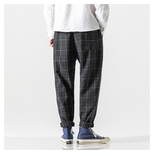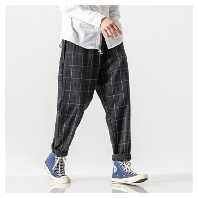 ワイドパンツ 総柄 ウエストゴム チェック柄 サルエルパンツ 大きいサイズ ゆったり 秋冬 メンズ カジュアル ボトムス 厚手 リラックス感 ロングパンツ