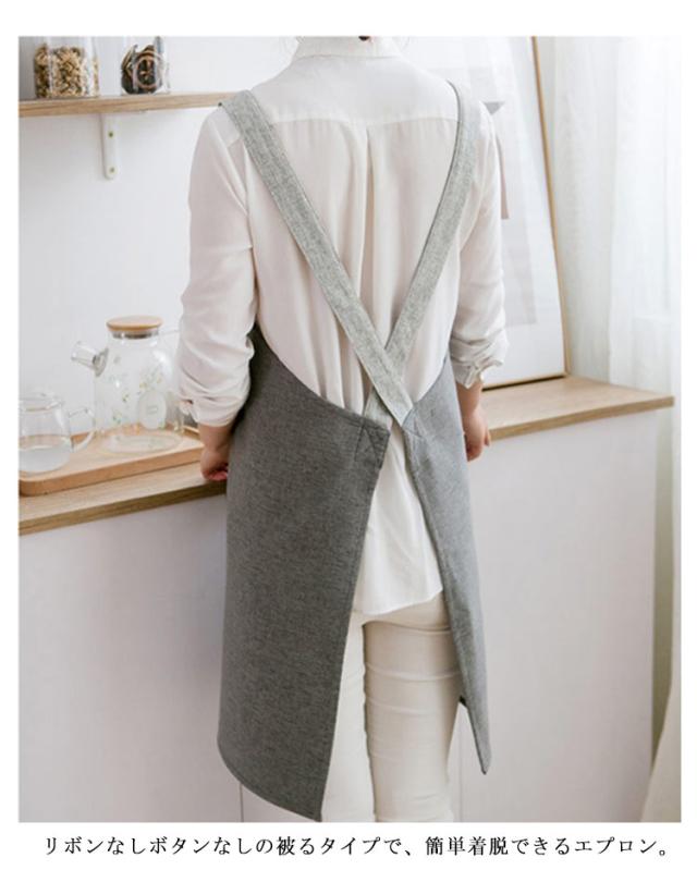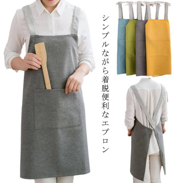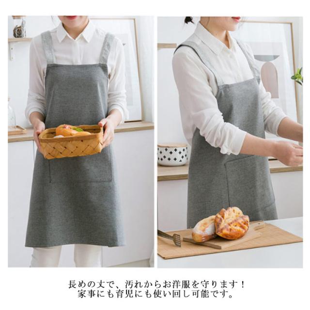 【送料無料】エプロン H型 男女兼用 撥水加工 カフェ 母の日 レディース メンズ カフェエプロン 保育士 可愛い ゆったり ポケット付き ナチュラル 幼稚園 ワンピース 無地 キッチン 家事 ワーク 普段使い 着脱便利 ロング丈 ロングエプロン