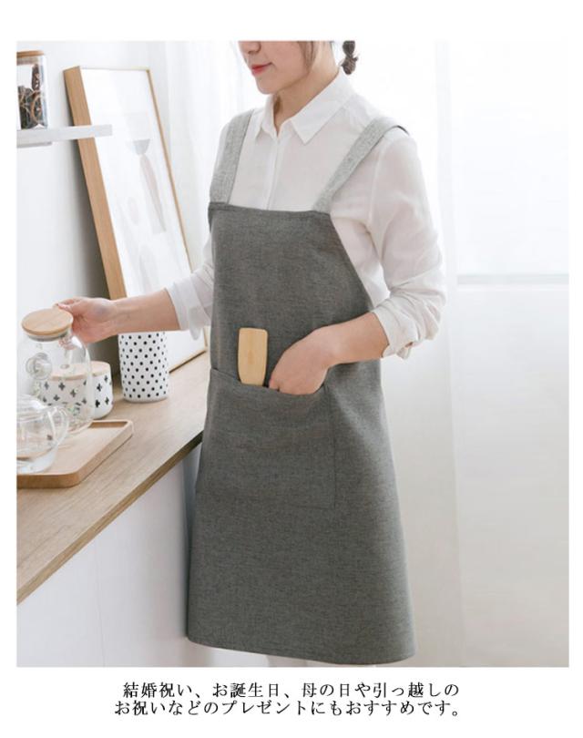 | シンプルながら着脱便利なエプロン 長めの丈で、汚れからお洋服を守ります!家事にも育児にも使い回し可能です。 リボンなしボタンなしの被るタイプで、簡単着脱できるエプロン。 丈夫でキレイな縫い目は長時間でご使用いただけます。 こだわりのナチュラルデザイン、可愛らしい大きめポケット付き、小物の出し入れも便利です。 結婚祝い、お誕生日、母の日や引っ越しのお祝いなどのプレゼントにもおすすめです。 | |