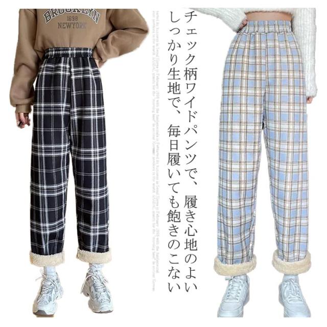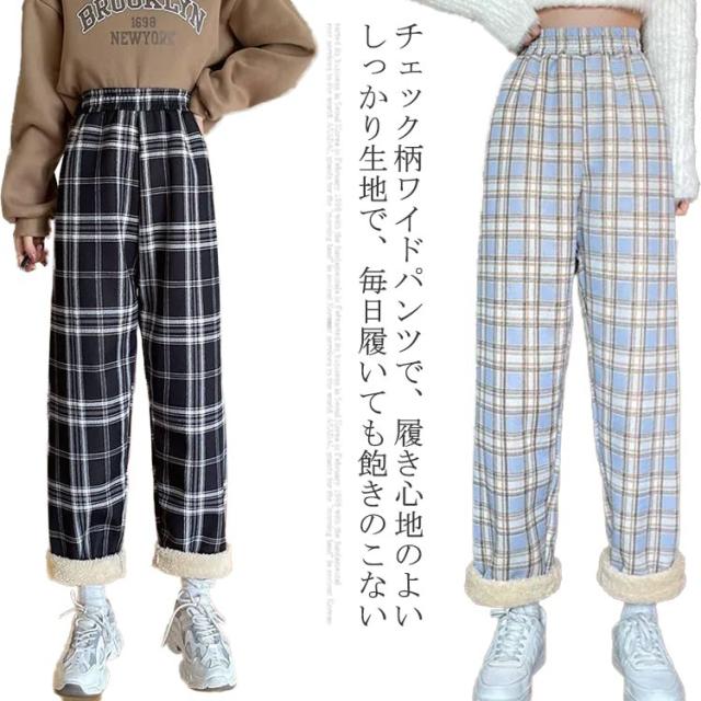 チェックパンツ ロングパンツ ワイドパンツ チェック柄 ガウチョパンツ ウエストゴム レディース ストレートパンツ イージーパンツ リラックスパンツ グレンチェック 厚手 秋冬 ボトムス