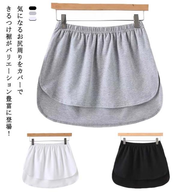 送料無料 つけ裾 付け裾 レディース ミニスカート インナースカート インナー 下着 ウエストゴム トレイヤード 重ね着 シャツ セーター トレーナー パーカー スウェット 体型カバー ブラック ホワイト