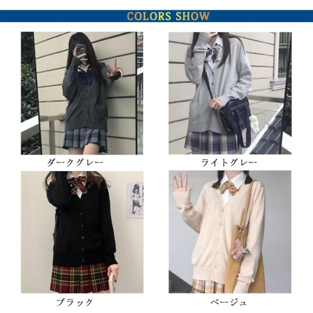 | 春秋のスクールライフを快適に・無地カーディガン 色の展開が豊富で、シンプルながら幅広い選択の可能なモデルです。 4色ご用意♪プチプラだから色違いで揃えて制服コーデを楽しもう! ユニセックスタイプなので、男性の方にもご利用いただけるサイズ展開となっています。 年齢を選ばず、 学生 男子 女子高生の制服にも、普段使いにもお使いいただけます! | |