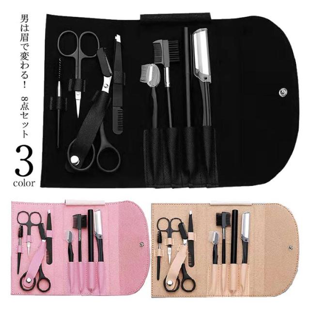 お手入れ 収納ポーチ付き 眉カット 8点セット はさみ 毛抜きセット 眉毛 処理 コンパクト 顔剃り まゆげ 送料無料 眉毛セット カミソリ 眉毛 ハサミ 眉剃り まゆそり レディース メンズ 顔そり 眉毛カット