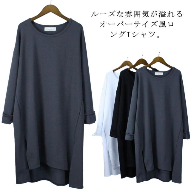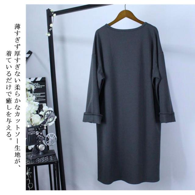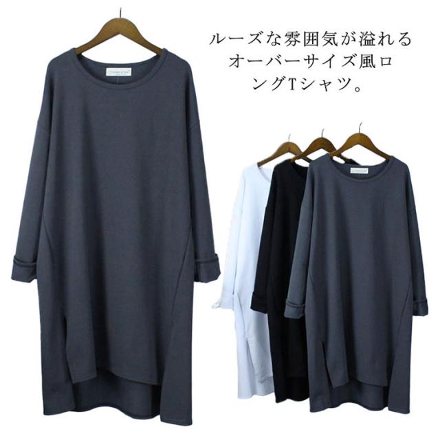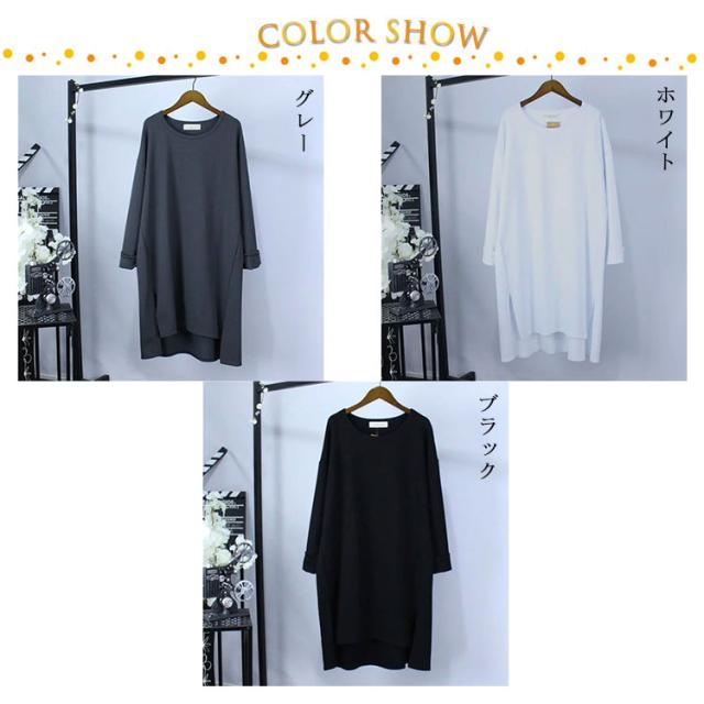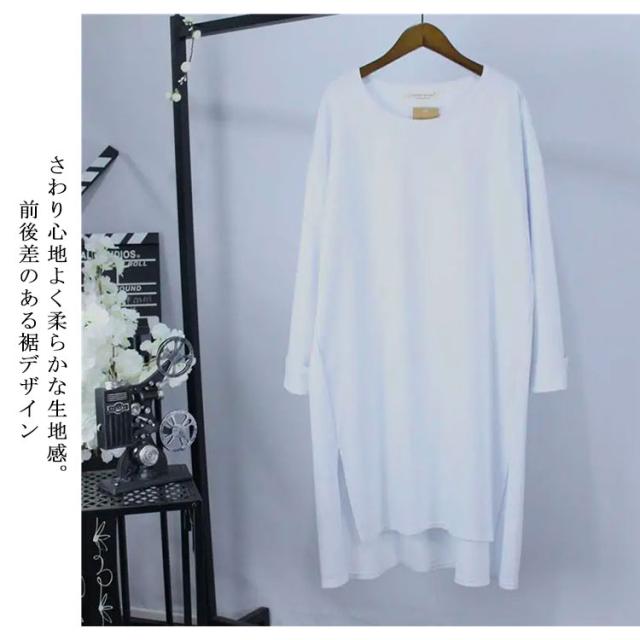 送料無料 長袖 体型カバー レディース トップス tシャツ 綿 ゆったり ビッグシルエット ロングtシャツ カジュアル シンプル カットソー スエット ルームウエア ゆったり 薄手 春 秋 オールシーズン 春 ロンティー