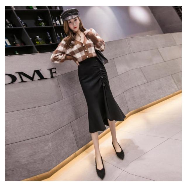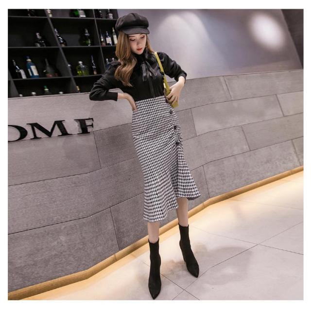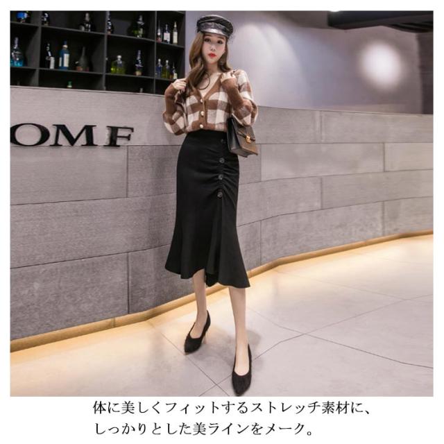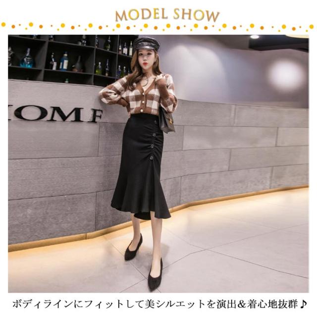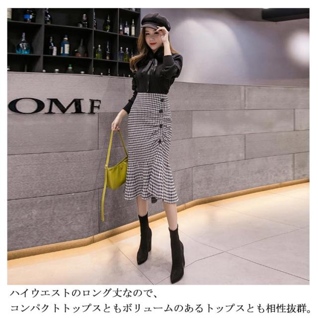 マーメイド スカート 千鳥柄 ハイウエストスカート ロングスカート マーメイドスカート 膝下丈 マーメイドスカート フレア バックスリット ミモレ丈スカート キレイめ 大人 かわいい 春 秋 カジュアル
