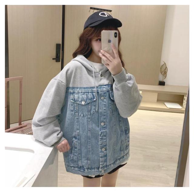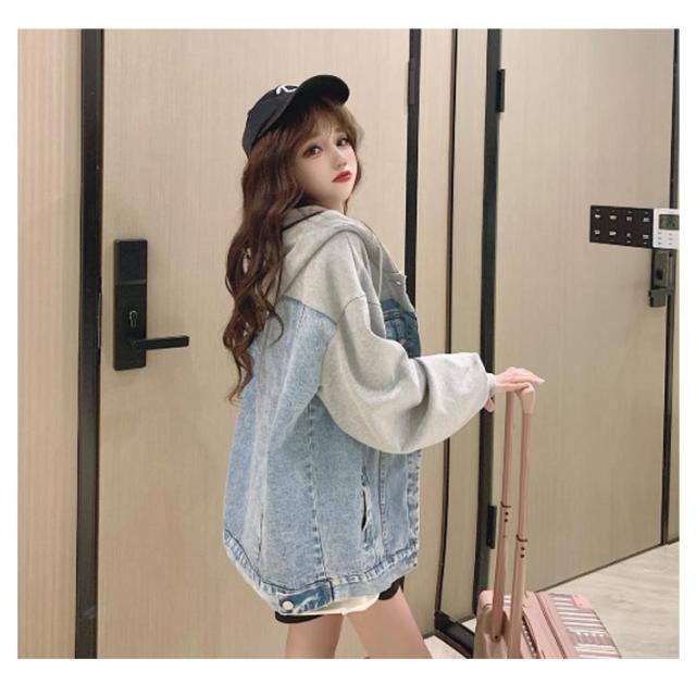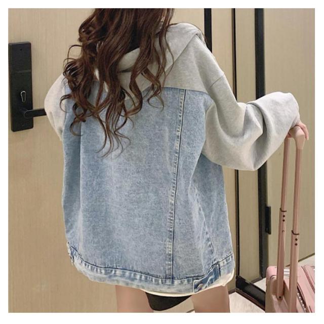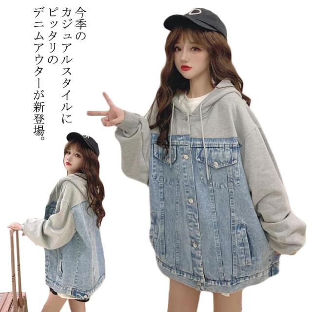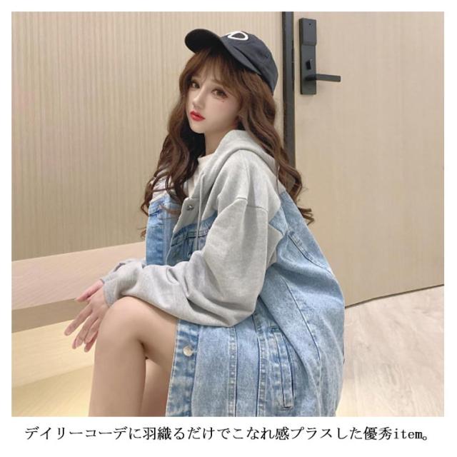 ビッグシルエット スウエットとデニムの切り替えたitem!秋服 デニムジャケット Gジャン デニムアウター ジャケット デニム アウター ジージャン 長袖 フード付き 春 ジャケット