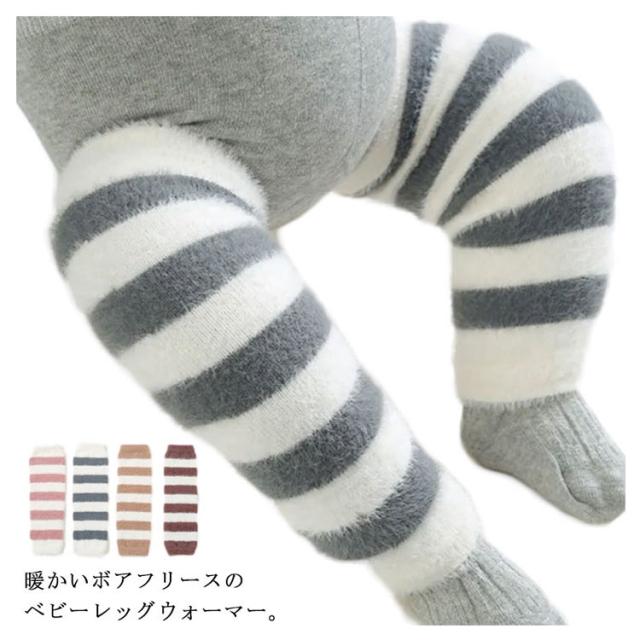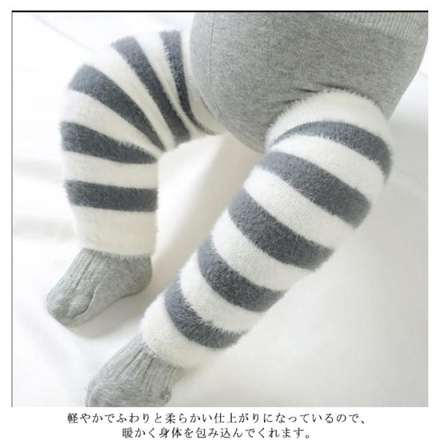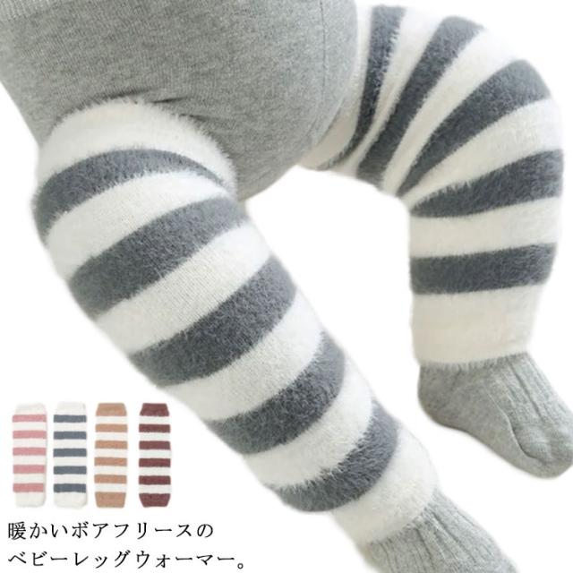 赤ちゃん レッグウォーマー ニーハイ キッズ ボアフリース 新生児 子供 かわいい 子ども ストライプ 3足セット ロング 秋冬 冬用 ふくらはぎ 柔らかい 暖かい