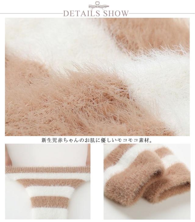 | 暖かいボアフリースのベビーレッグウォーマー。 新生児赤ちゃんのお肌に優しいモコモコ素材。 軽やかでふわりと柔らかい仕上がりになっているので、暖かく身体を包み込んでくれます。 冬は防寒対策におすすめです。 伸縮性のある糸を使っているので、お子様の身体に合わせて生地がフィットします。 よく伸びてくれるから、脱ぎ着させやすいのが嬉しいポイントです。 | |