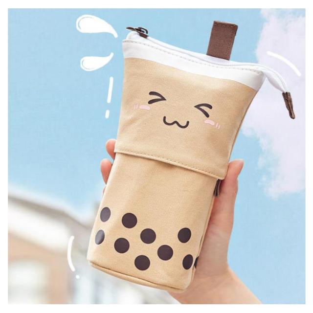 ペンスタンド ペン立て チャック スタンド 小学校 便利 ペンケース ペンポーチ チャック 自立 筆箱 かわいい おしゃれ 文房具 大容量 スライド 2WAY 中学 高校 大学生 ミルクティー