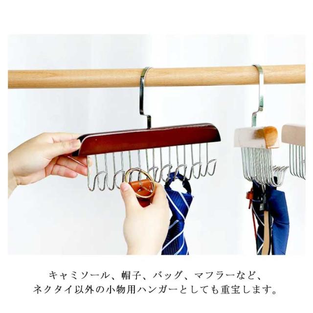 下着 ネクタイ掛け ネクタイ収納 すべらない ネクタイハンガー 12本掛け 16本掛け 木製ハンガー ネクタイハンガー ネクタイ キャミソール バッグ 帽子 ベルト 小物収納 整理 コンパクト クローゼットをスッキリ 360度回転フック付き おしゃれ ネクタイ整理
