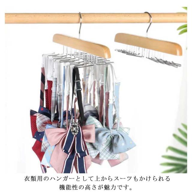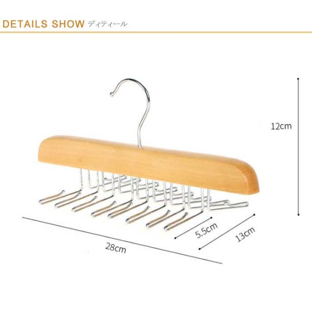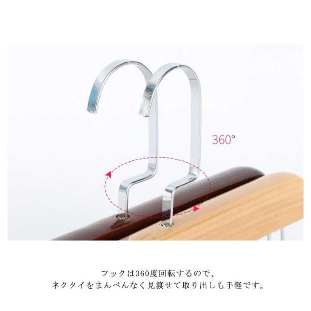 | 何本ものネクタイを、見やすくきれいに収納できるネクタイハンガー。 素材に高品質な木を使用した、高級感のある落ち着いた見た目が特徴的。 ネクタイ掛けの部分には折り返しがついており、しっかり挟み込みます。 衣類用のハンガーとして上からスーツもかけられる機能性の高さが魅力です。 キャミソール、帽子、バッグ、マフラーなど、ネクタイ以外の小物用ハンガーとしても重宝します。 フックは360度回転するので、ネクタイをまんべんなく見渡せて取り出しも手軽です。 お出かけ前にあわてない!玄関に置いて、マスク、財布などお出かけに必要なものはまとめて収納可能! | |
