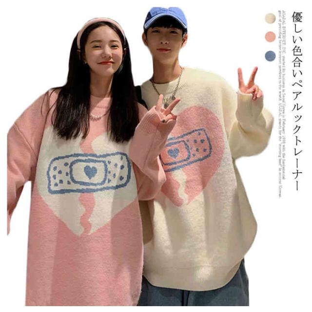 | 優しい色合いペアルックトレーナー シンプルな様式で、アウターやジャケットにコーデしやすいです。 裾と袖口はリブ仕様のため、防寒性も高いです。 お部屋の冷え対策に防寒着としてルームウェアにも幅広く使用できます。 恋人二人で一緒に着て、ラブラブ感が溢れている。 | |