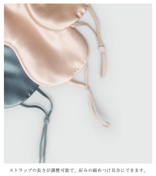 | やわらかシルク100%の高級アイマスク。 お昼寝、夜、移動中も、お休み用の極上シルクアイマスクです。 眠りの妨げになる光をしっかり遮断します。通気性も抜群。 耳にかけるタイプのアイマスクは耳が痛くなりがちですが、かぶって使うタイプなので、痛くなりません。 軽く柔らかいシルクでやさしい付け心地です。 ストラップの長さが調整可能で、好みの締めつけ具合にできます。 上質なシルクアイマスクのこだわり やわらかで耳が痛くならないストラップを使用し、快適さを追求しました。 自然な心地よい眠りを楽しんでいただけます。 シルクは天然の素材なので、お肌にもやさしく、敏感肌の方でもお使いいただけます。 | |