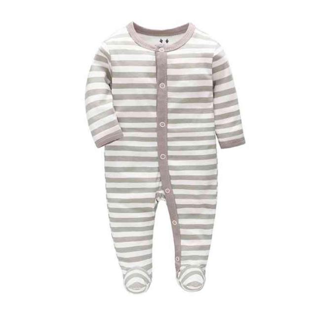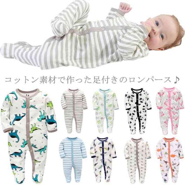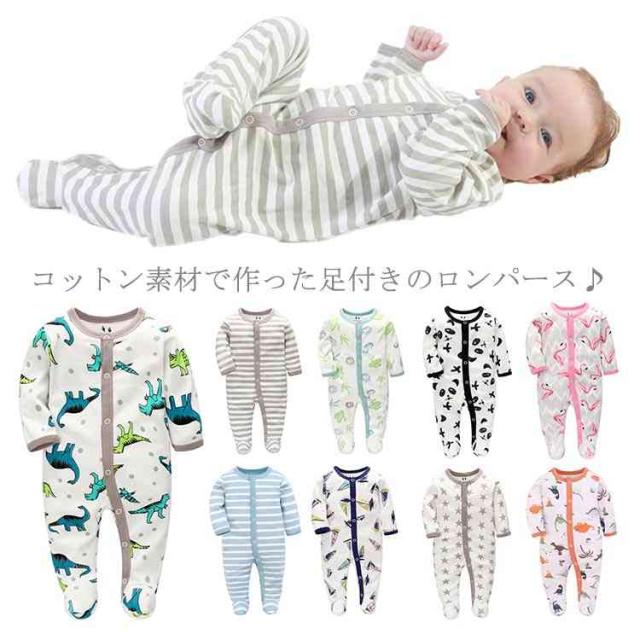 秋 長袖 女の子 足つき ロンパース 男の子 赤ちゃん 春 カバーオール 送料無料 ベビー服 肌着 コットン ロンパース 前開き ストライプ柄 幼児 子供服 可愛い 出産祝い プレゼント カバーオール