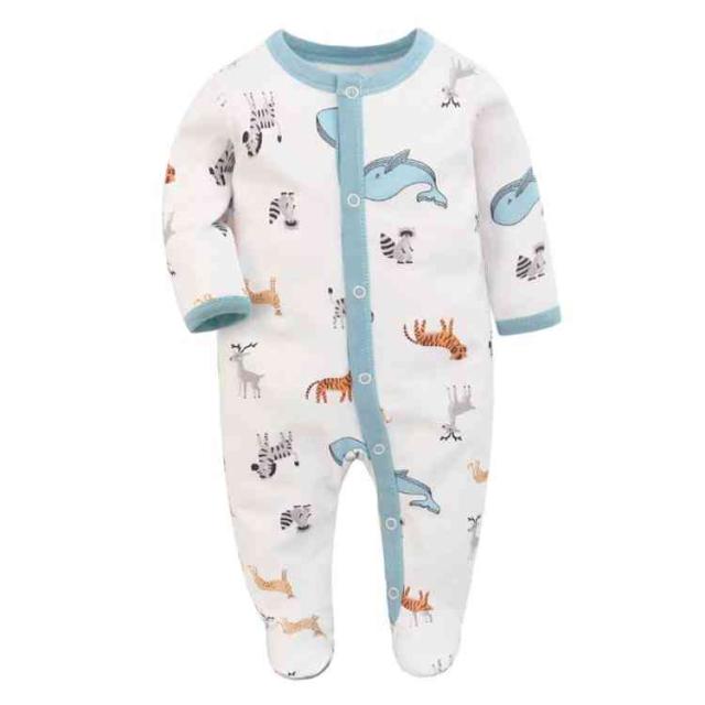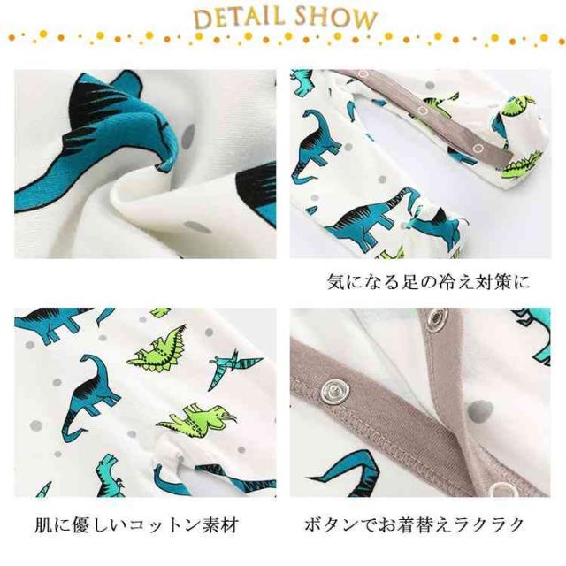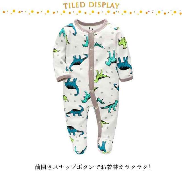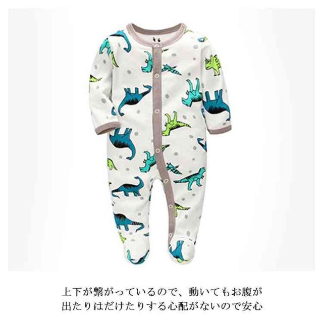 | コットン素材で作った足付きのロンパース。♪ 足まで覆ってくれるフッティは靴下いらずで、寒い時期に重宝します。 愛らしいデザインはユニセックスデザインで、男の子にも女の子にもお使いいただけます。★ 前開きスナップボタンでお着替えラクラク! やわらかい生地で赤ちゃんに安心。 肌寒い季節〜暖かい季節まで長く着用できます☆ | |