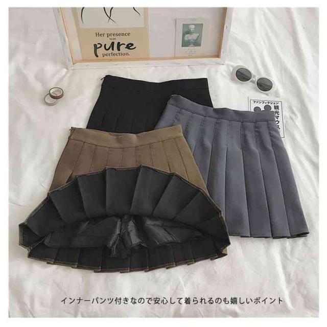 ショート丈 スカート ミニプリーツスカート フレアスカート スカート インナーパンツ付きスカート プリーツスカート 美脚 無地 コスプレ 送料無料 無地