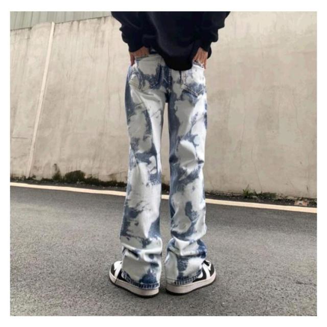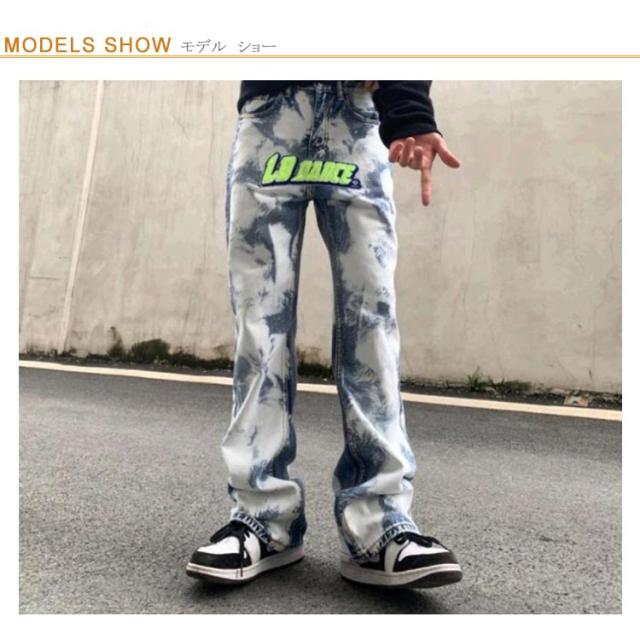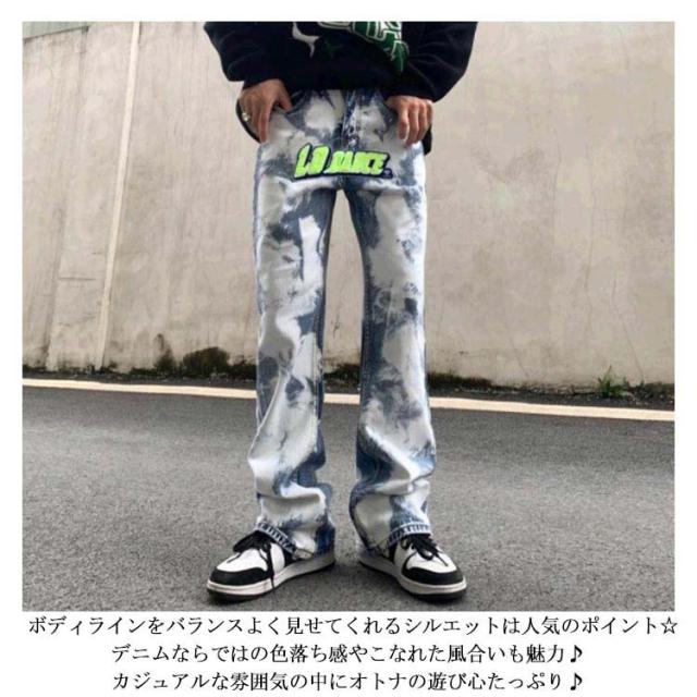 デニムパンツ Gパン パンツ 大きいサイズ デニム 大きいサイズ タイダイパンツ おしゃれ レディース 黒 刺繍 ジーパン バギー ゆったり バンド ストリート系 ファッション HIPHOP メンズ