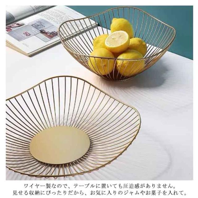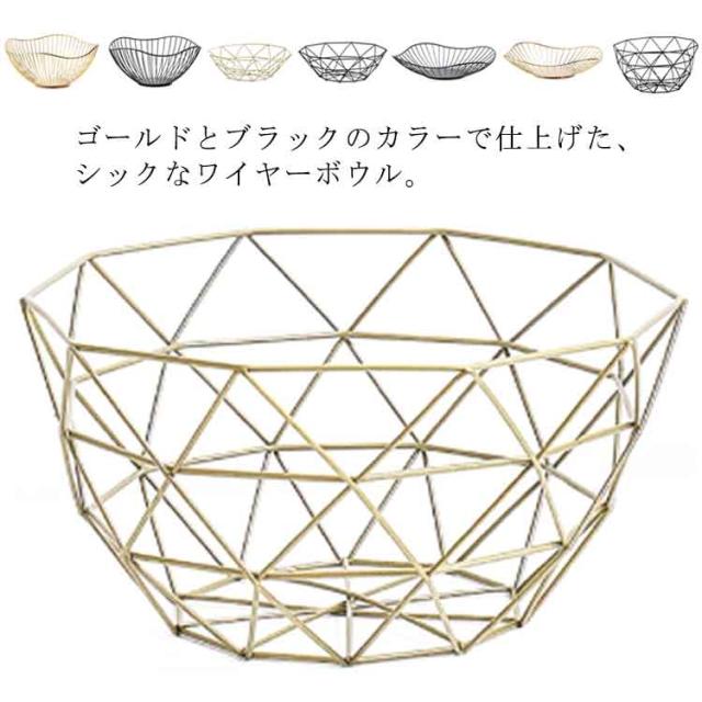 【4種類×2色】ワイヤーバスケット フルーツバスケット 小物 トレー 北欧風 フルーツボール お菓子入れ 金 フルーツ皿 菓子器 果物かご 果物収納 収納 黒 家庭用 リビング おしゃれ