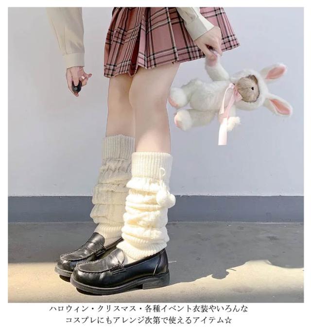 かわいい 冷えとり ショート丈 ロング丈 温め レッグウォーマー レッグウォーマー デイリー ニット 睡眠 あったか 靴下 足首ウォーマー サポーター 快眠 寝る用 ボンボン付き おしゃれ JK 制服 コスプレ パーティー イベント 衣装 仮装 コスチューム 冷え対策