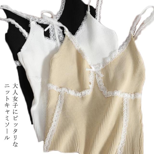薄手ニット キャミソール 送料無料 インナー リブ レディース ニットキャミ 無地ニット 下着 インナーニット キャミソール インナーキャミ ニットトップス リブニット Vネック 伸縮性 キレイめ レースサマーニット