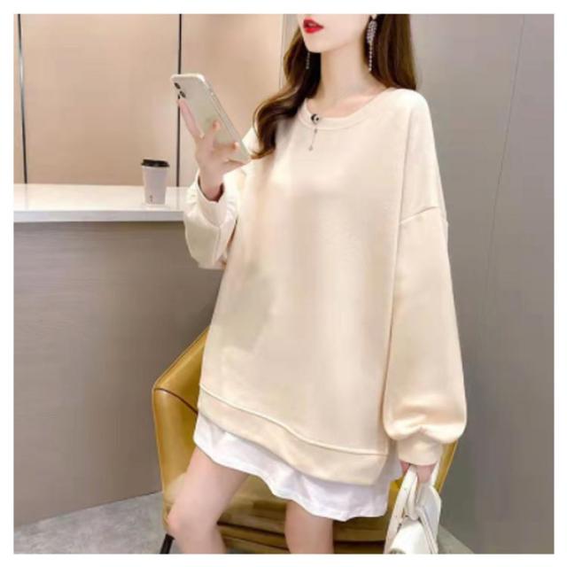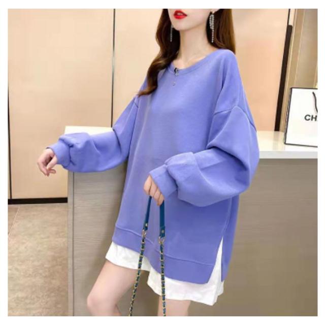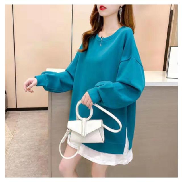 スウエット ドルマンシルエット ドロップスリーブ 重ね着風 レディース トレーナー 全11色!重ね着風トレーナー プルオーバー ラウンドネック レイヤード ゆったり 大きサイズ 全11色!重ね着風トレーナー 裾切替 スリット 春 秋 おしゃれ トップス