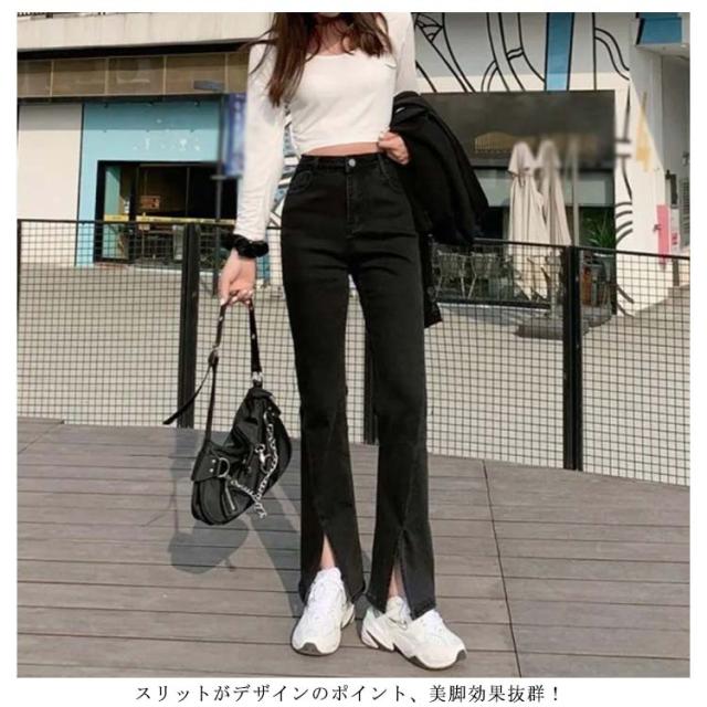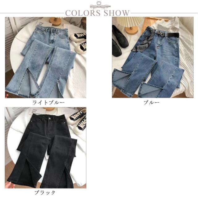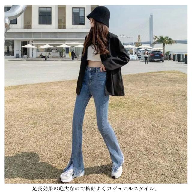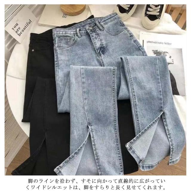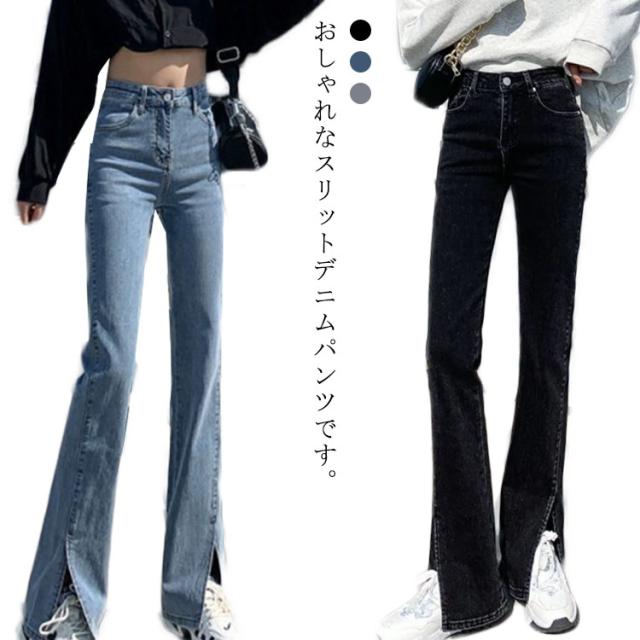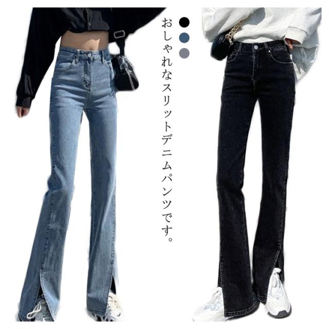 ベルボトム 秋冬 フレアパンツ ストレッチパンツ ジンズ ワイドパンツ ボトムス かわいい 美脚 ロング丈 レデイ—ス シンプル スリット おしゃれ かわいい きれいめ 春 夏 秋 冬 オールシーズン 着?せ デニムパンツ