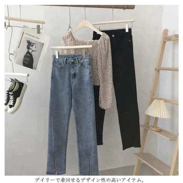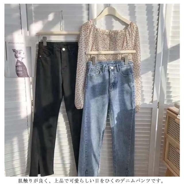 | おしゃれなスリットデニムパンツです。 足長効果の絶大なので格好よくカジュアルスタイル。 スリットがデザインのポイント、美脚効果抜群! 脚のラインを拾わず、すそに向かって直線的に広がっていくワイドシルエットは、脚をすらりと長く見せてくれます。 肌触りが良く、上品で可愛らしい目をひくのデニムパンツです。 デイリーで着回せるデザイン性の高いアイテム。 | |