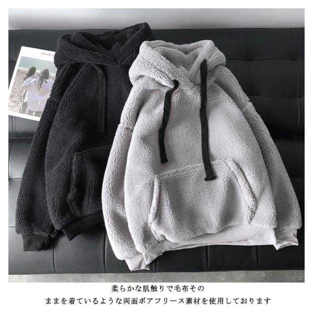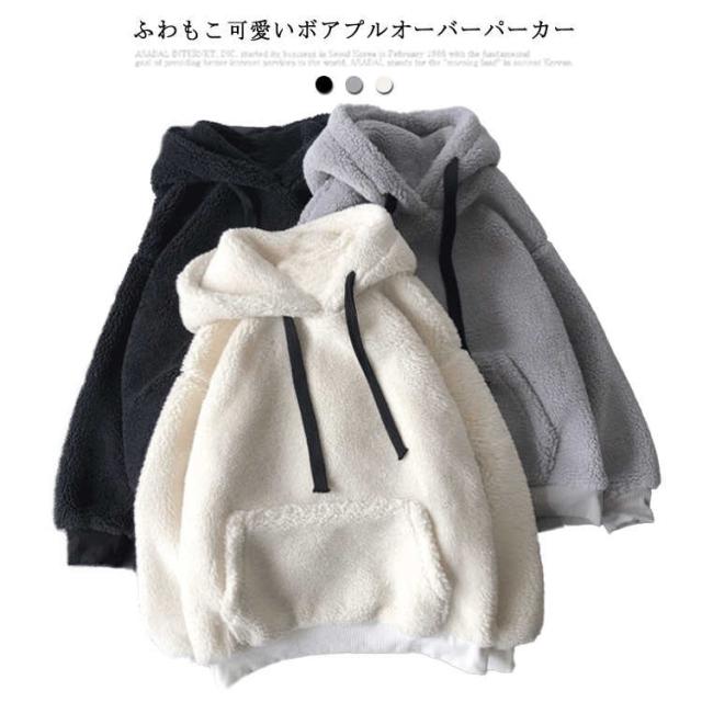 秋冬 パーカー ボアパーカー プルパーカー レディース 厚手 総ボア あったか 長袖 プルオーバー オーバーサイズ お洒落 ふんわり もこもこ 防寒 カジュアル フード付き シンプル リラックス トップス アウター ゆったり 体型カバー ゆったり
