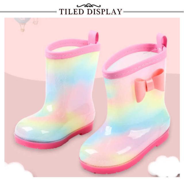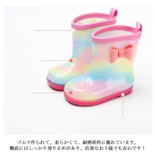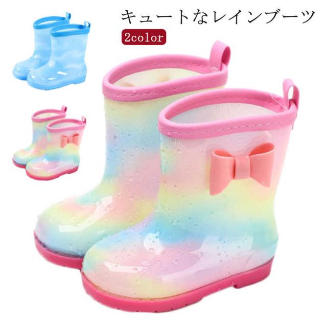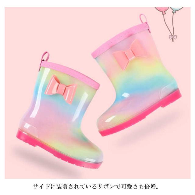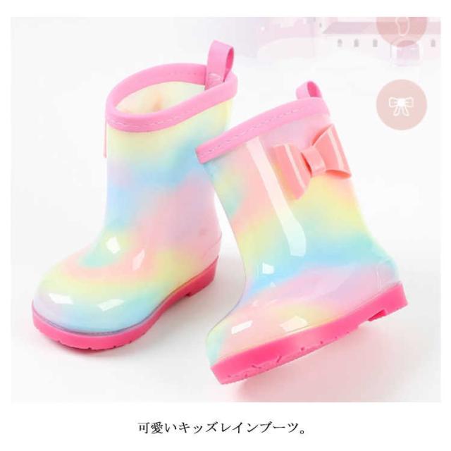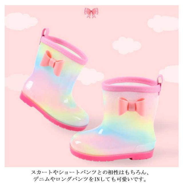 レインブーツ 17cm 20cm 女の子 長靴 虹色 軽い 15cm キッズ 16cm 18cm 19cm 21cm おしゃれ こども 軽量 雨靴 ショート 子供 小学生 かわいい ジュニア 子ども リボン