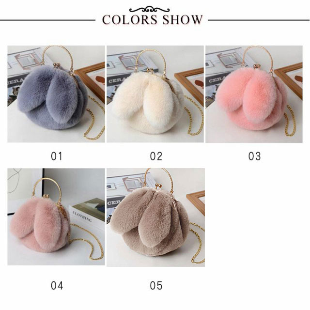 | ふわふわの小さなクロスボディバッグ。 肌触りがいいフェイクファーと丈夫な金属チェーンを使用しています。 小銭入れ、鍵、スマホなど小物を収納できるファションアイテムです。 とってもキュートな見た目なので、女性や子供の可愛らしさを引き出してくれます。 | |