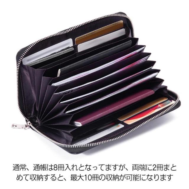 | スキミング防止の通帳ケースが登場しました! 中身が一目瞭然のじゃばら式で使いやすく、出し入れラクラク。 通常、通帳は8冊入れとなってますが、両端に2冊まとめて収納すると、最大10冊の収納が可能になります。 キャッシュカードなどを収納するのに便利なカードポケットが8ヵ所あるたっぷり満足収納のマルチケースです。 スキミング防止機能付きなのでicカードなどに入っている個人情報を盗まれる心配もありません。 ラウンドファスナーが滑らかでスムーズに開け閉めできます! レザーが落ち着いた印象でデイリー使いはもちろんのこと、仕事づかいとしてもおすすめ。 通帳、カード、パスポート、領収書、etc…この通帳ケース1つでスッキリ収納! | |