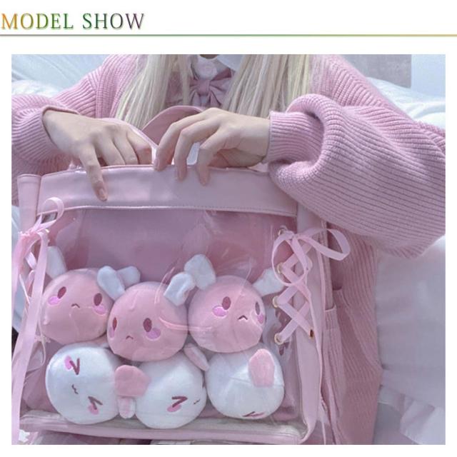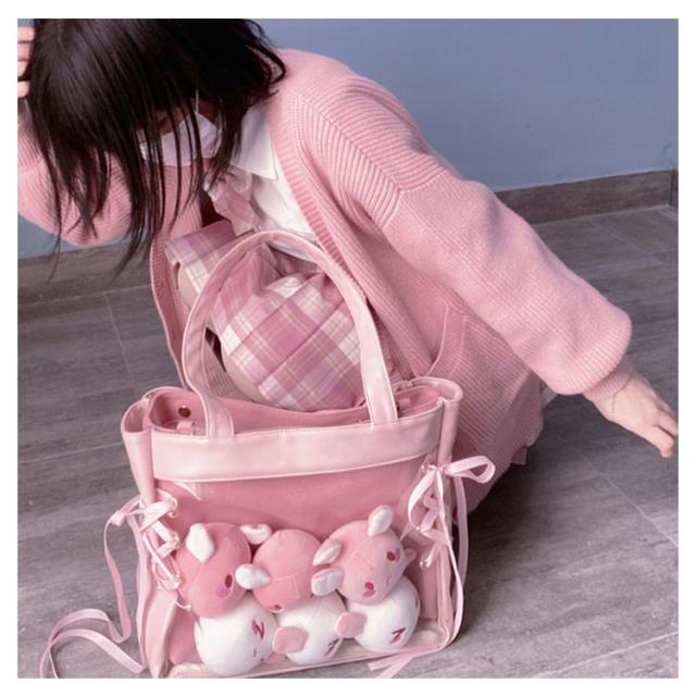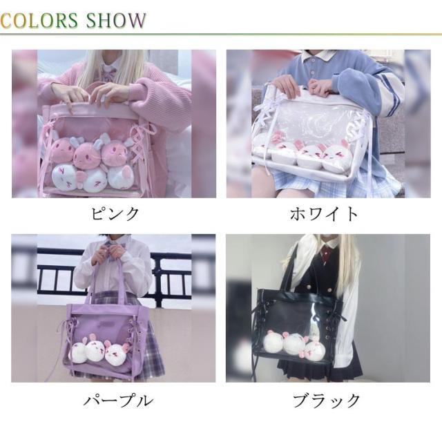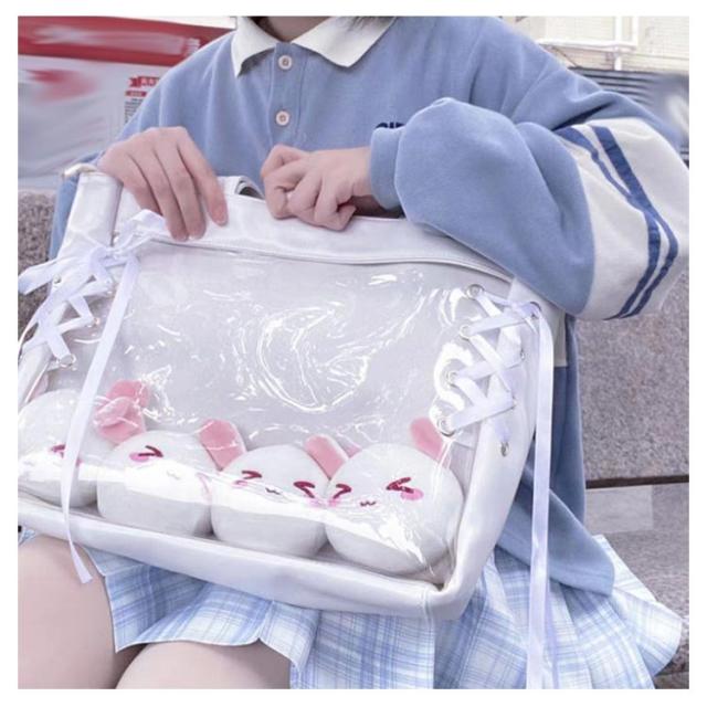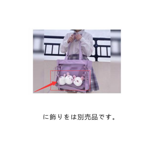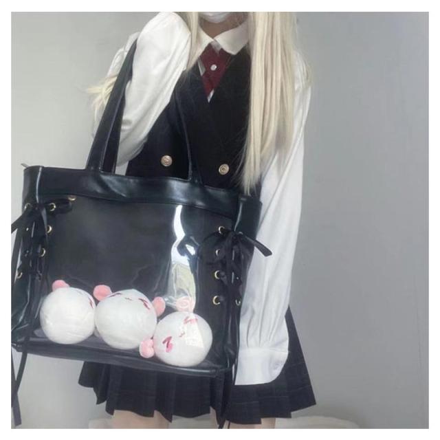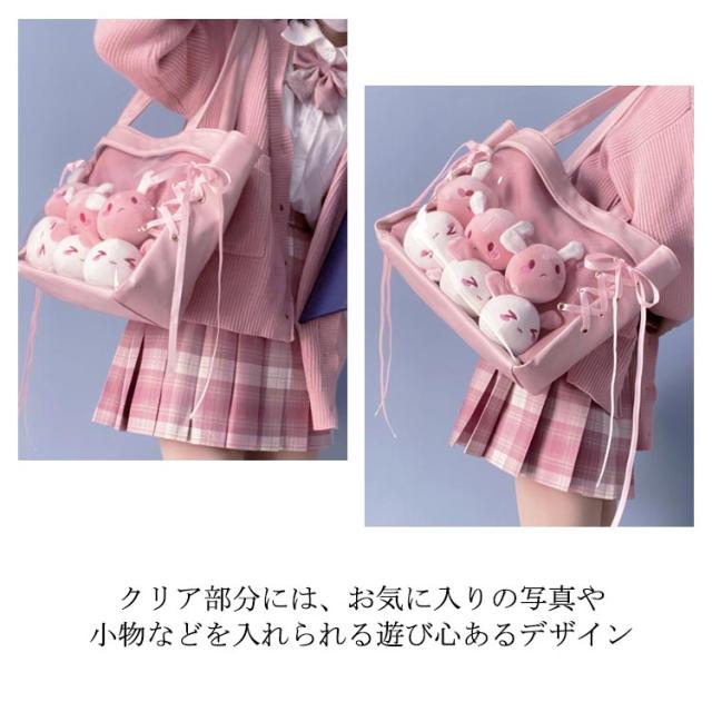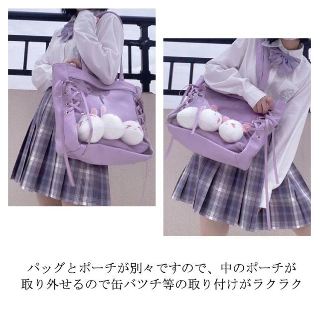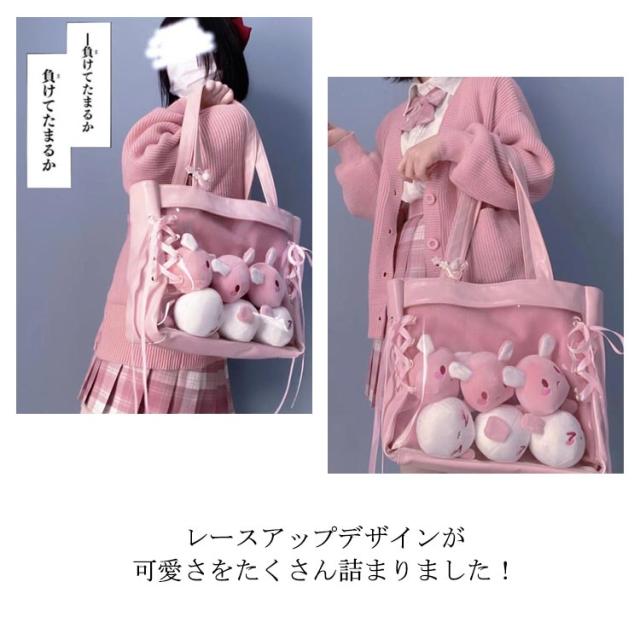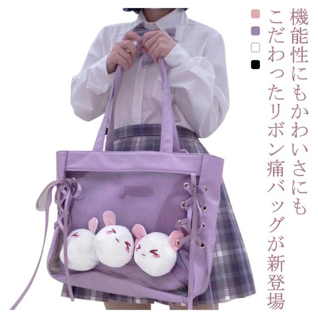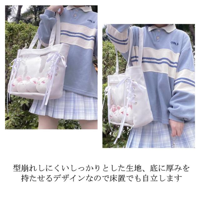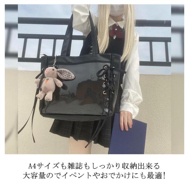 見せバッグ 2重バッグ トートバッグ クリアバッグ 痛バッグ 透明ポケット 缶バッジ リボン 斜め掛け バッグ ショルダーバッグ デコバッグ 肩掛けバッグ レースアップ フェイクレザー 痛バ デコバ ガールズ ギフト カバン かわいい 軽量