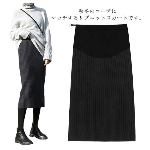 マタニティ スカート 秋冬 春 ひざ丈 ミモレ丈 ロング丈 3タイプ 膝丈 リブ ニット スカート 暖かい 防寒 寒さ対策 ハイウエスト ボトムス タイトスカート スリット 妊婦服 産前 産後 妊娠 オフィス 通勤 伸縮性 ブラック 黒 グレー 送料無料
