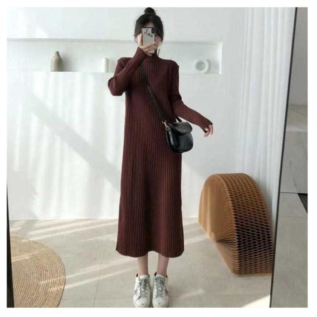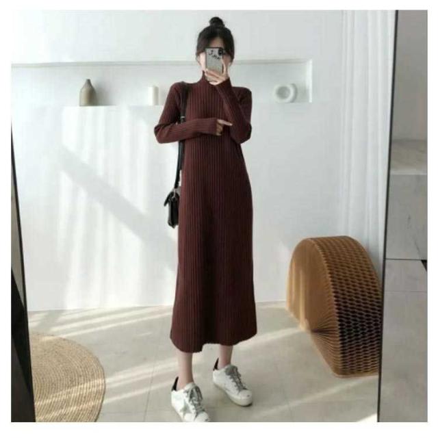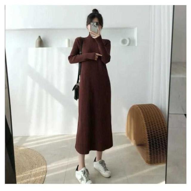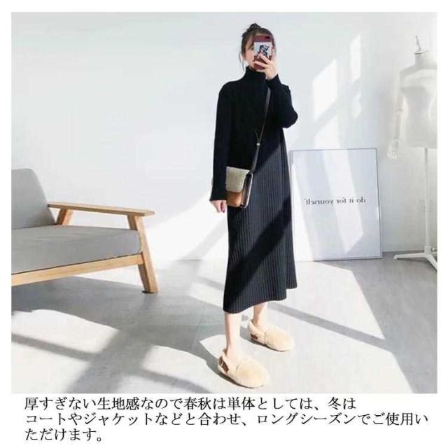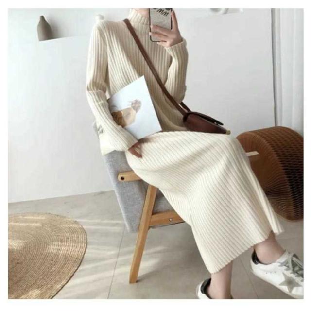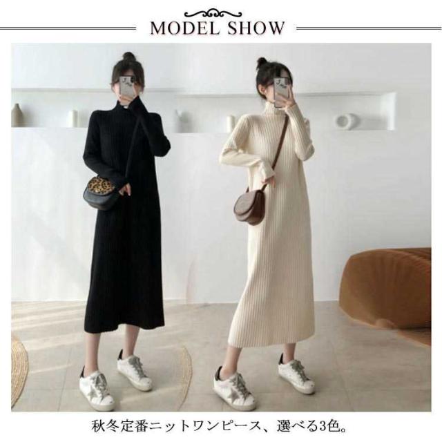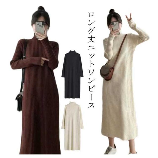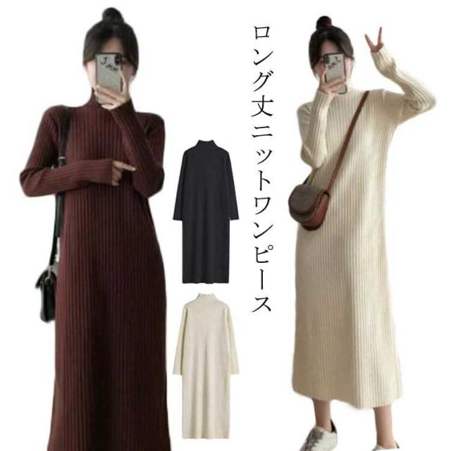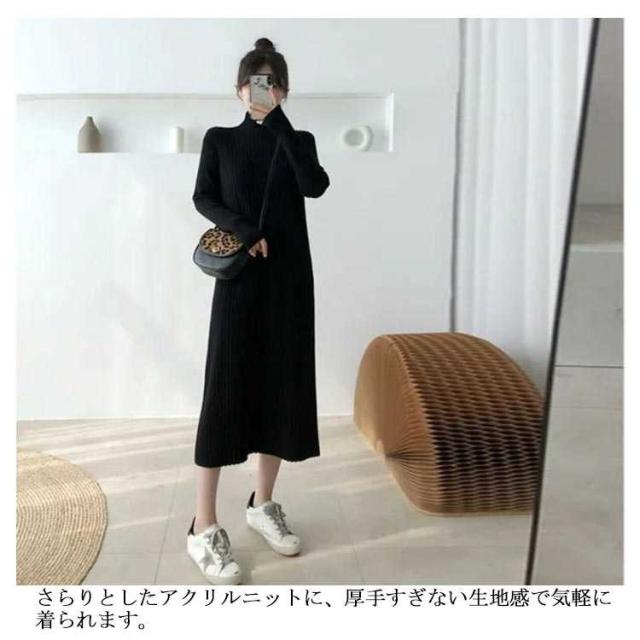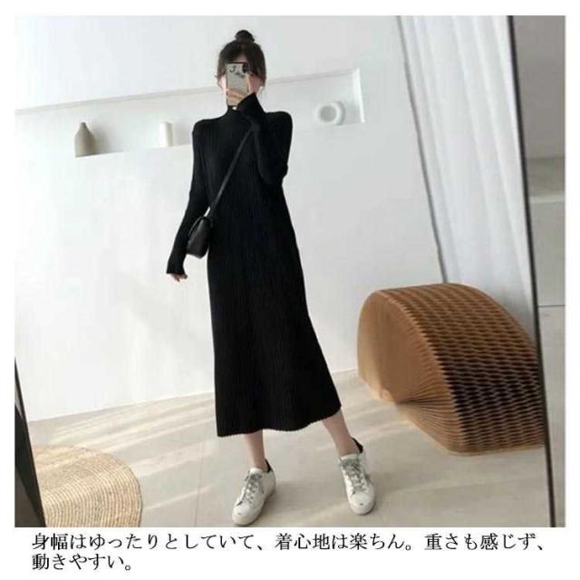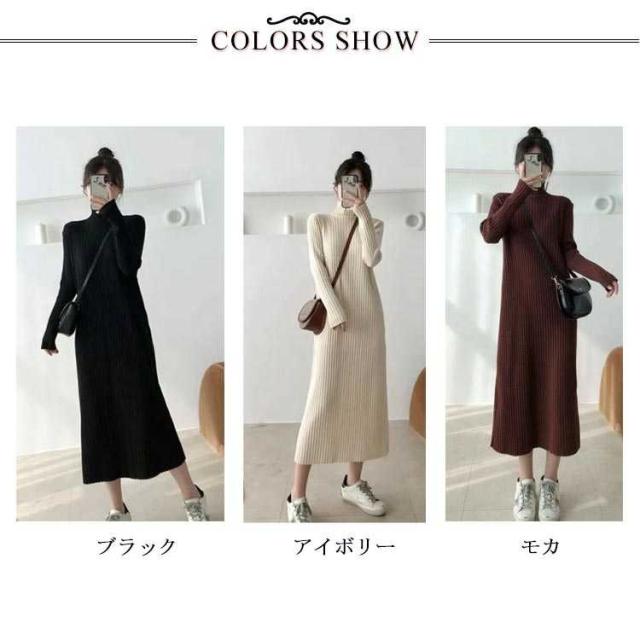 ロングワンピース ワンピース レディース 長袖 セーター 秋冬 無地 タートルネック ニット シンプル カジュアル 暖かい ブラック ニットワンピース