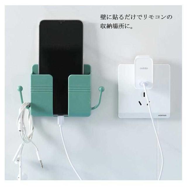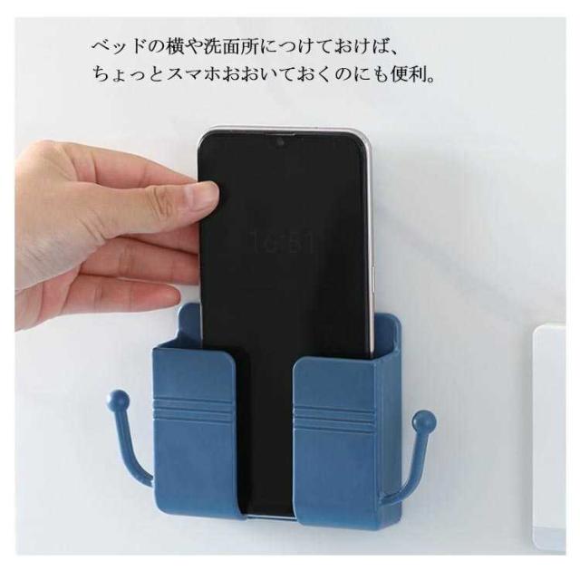 | テレビやエアコンのリモコン収納ケース♪ 後付け、付属のテープで貼るだけ簡単。壁の穴あけは不要です。 壁に貼るだけでリモコンの収納場所に。 底面にコードを通す穴があいているので充電もできます。 ベッドの横や洗面所につけておけば、ちょっとスマホおおいておくのにも便利。 | |