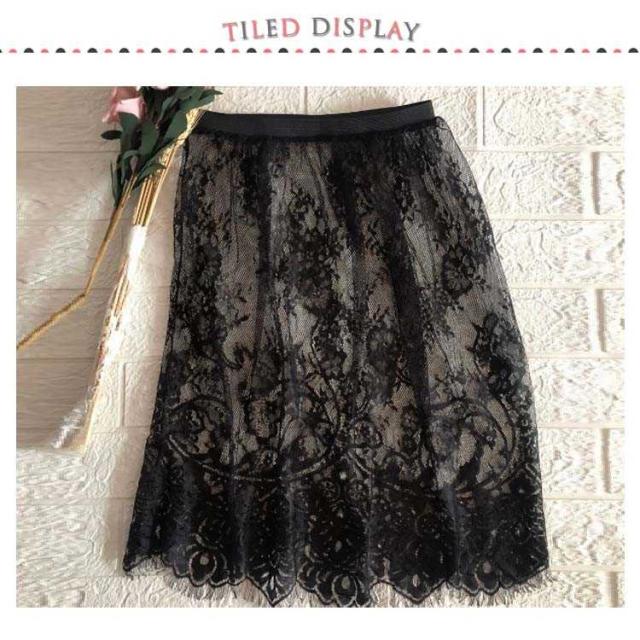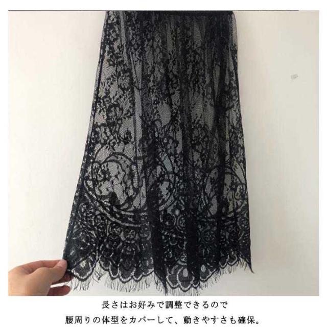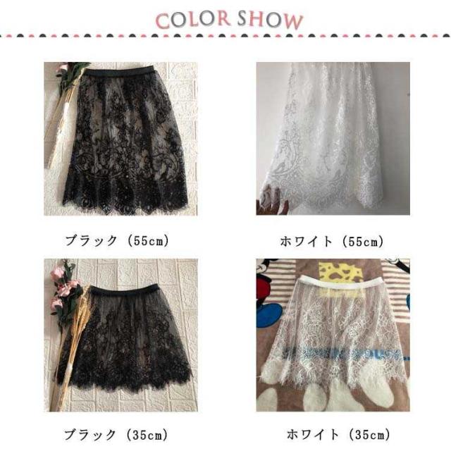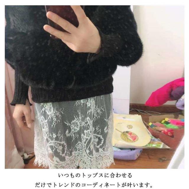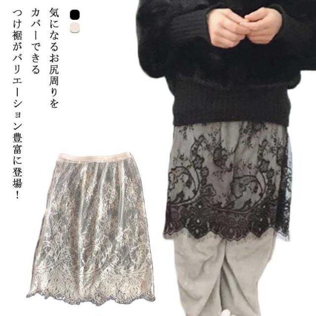 インナースカート レース 総レース レーススカート 送料無料 レディース 付け裾 ミニスカート 35cm インナー 花柄レース 下着 ウエストゴム トレイヤード 重ね着 体型カバー ブラック ホワイト つけ裾