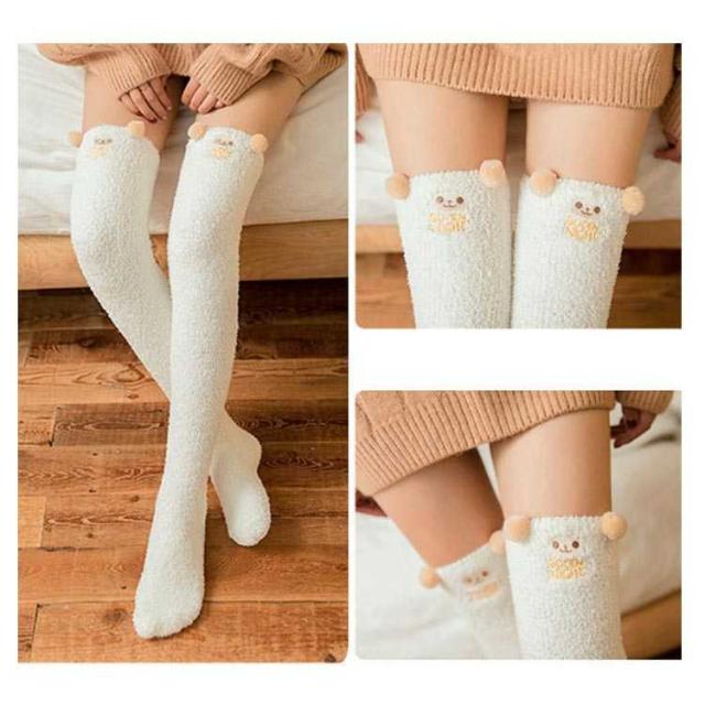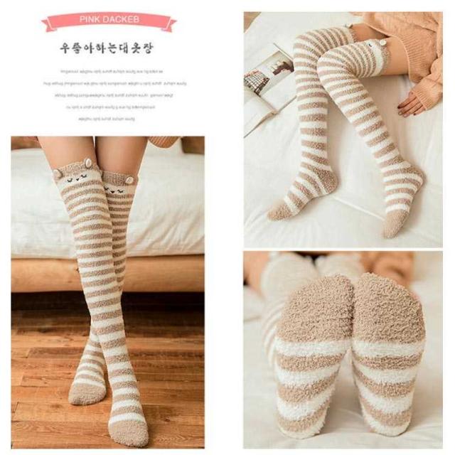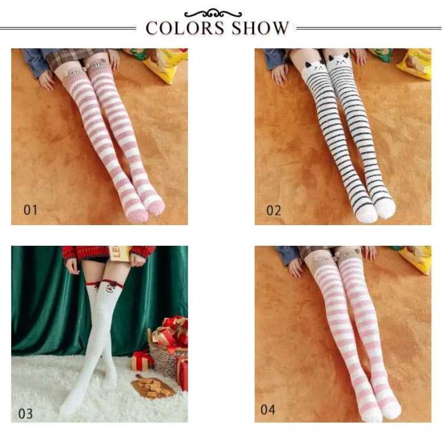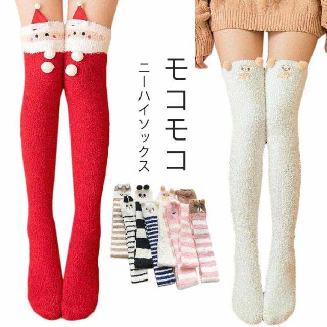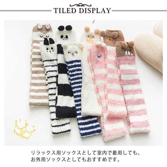 ソックス レディース 送料無料 靴下 ニーハイソックス 暖かい ボーダー ロングソックス ソックス ふわふわ もこもこ 可愛い アニマル ハイソックス プレゼント バレンタインデー ルームソックス