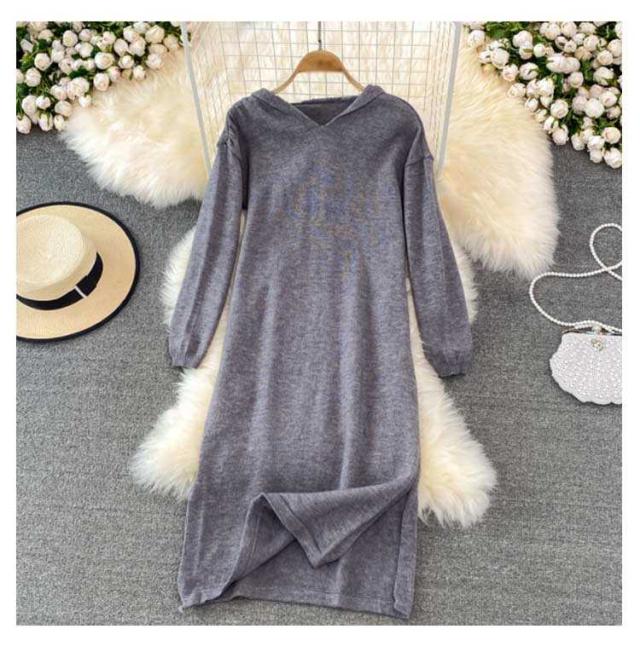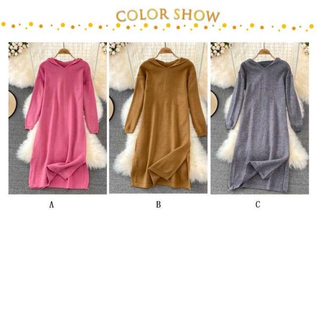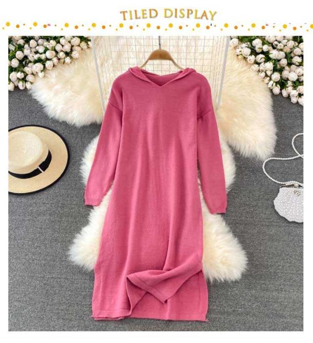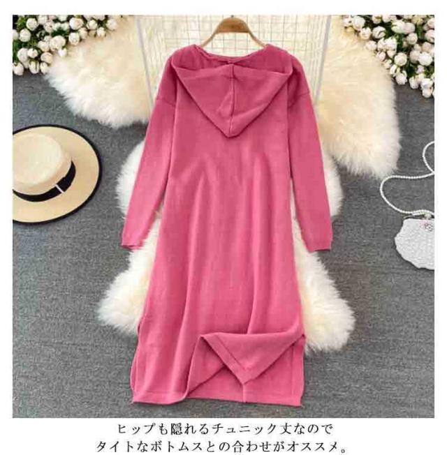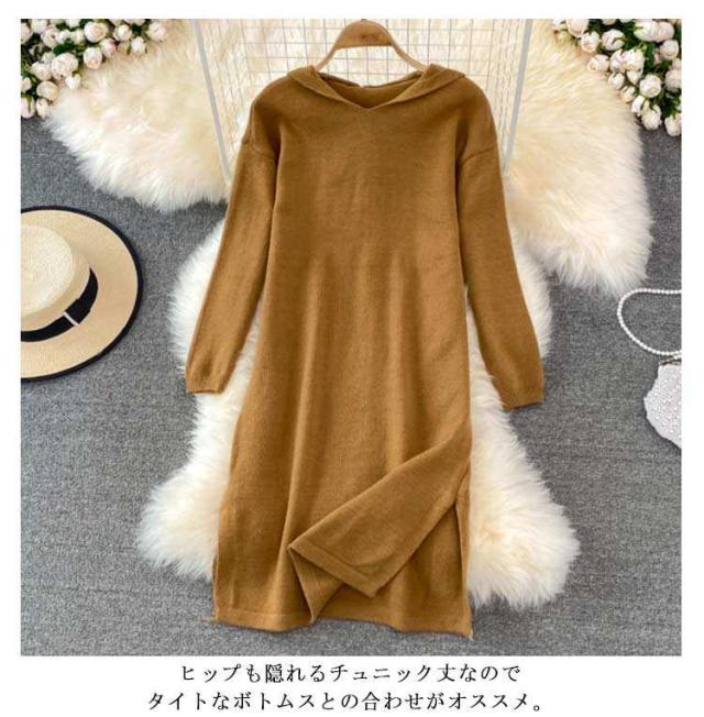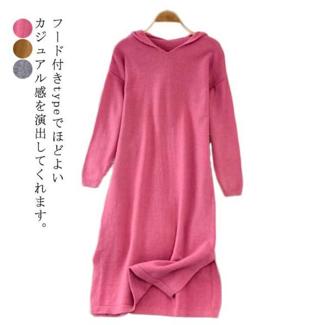 ニットパーカー 長袖 ニットワンピース ニット レディース パーカーワンピース ロング レディース スリット フード付きニットパーカー プルオーバーパーカー 無地 秋 春 冬 カジュアル プルオーバー