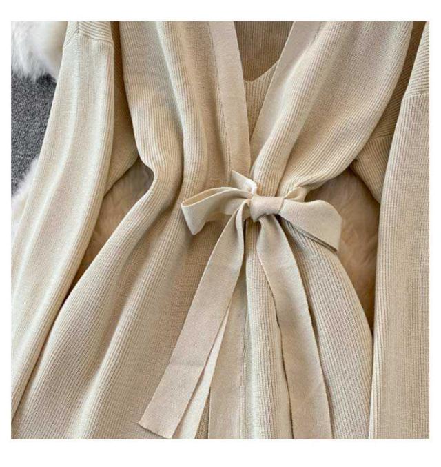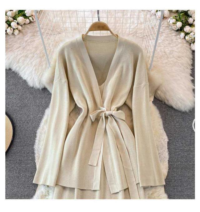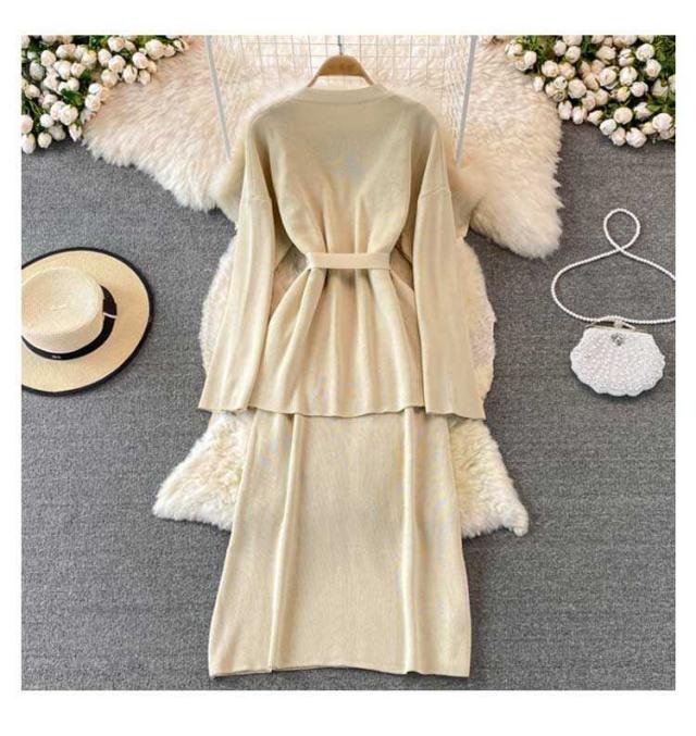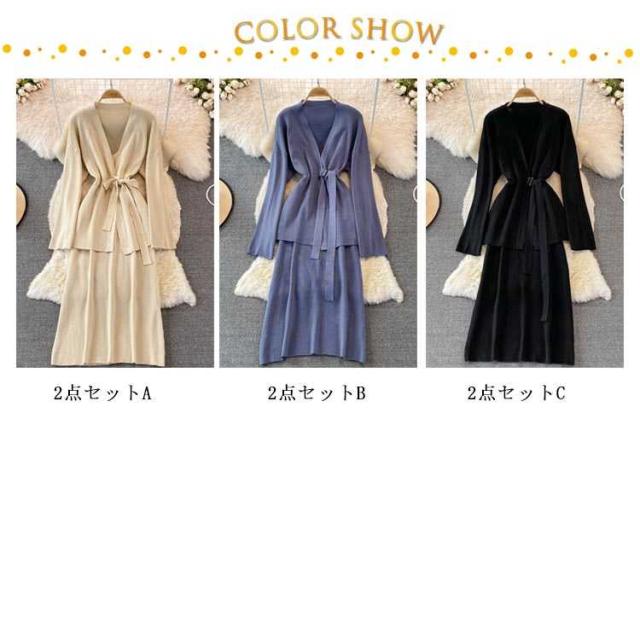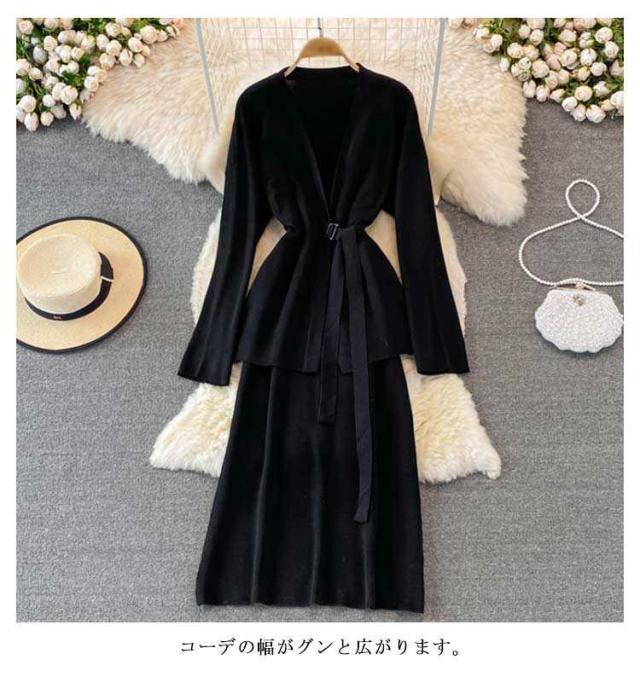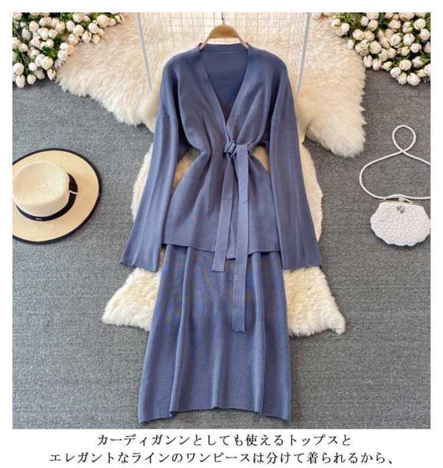 無地 タイトアワンピース 2点セット ニットアップ レディース 送料無料 セットアップ ニット ワンピース トップス タイトアワンピース ニット シンプル 上品 通勤 普段着 お洒落 謝恩会 披露宴 同窓会 カーディガンン