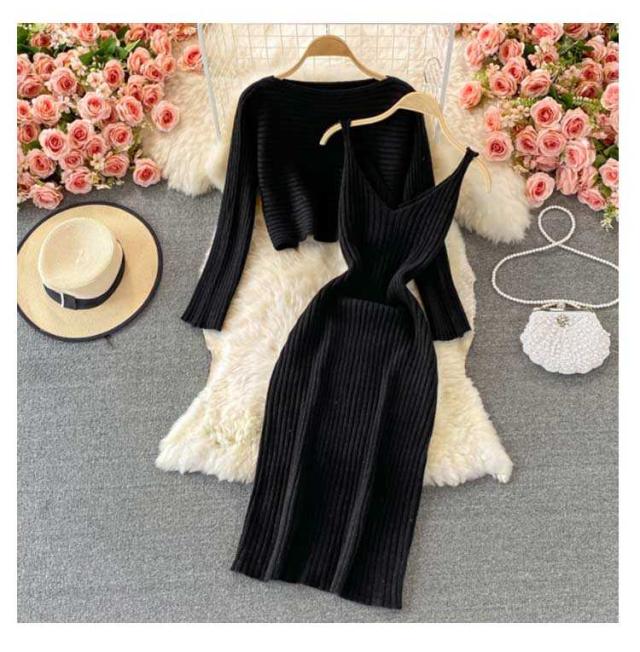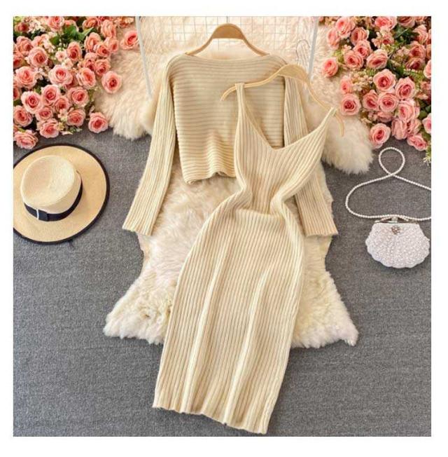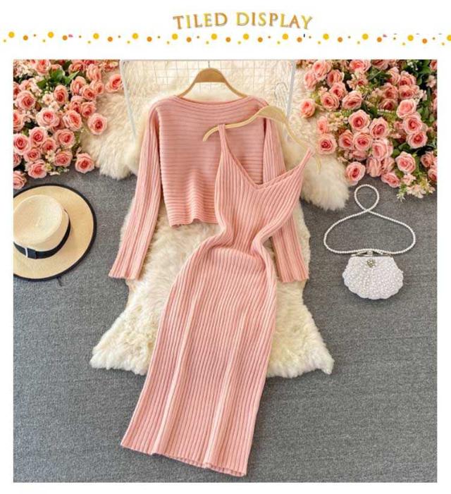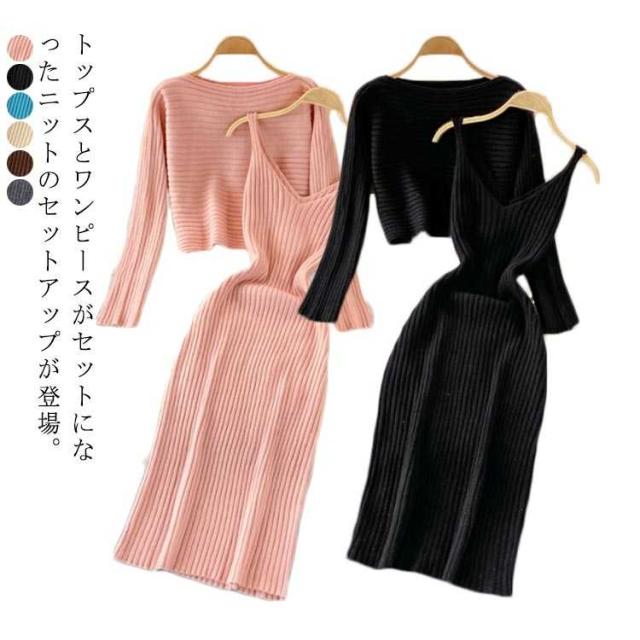 ワンピース 披露宴 レディース 送料無料 セットアップ 上品 ニットトップス 2点セット ニット キャミソールワンピース 普段着 無地 シンプル ニット 通勤 お洒落 リブニット 謝恩会 ニットトップス 同窓会 ニットアップ