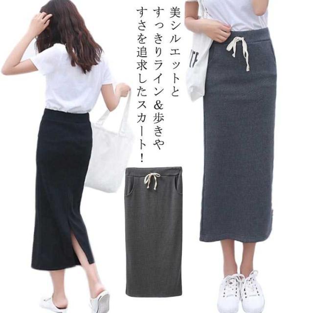 リラックス スエット ミモレ丈 無地 ロングスカート レディース スウェット スリット入り ロング丈 カジュアル ルームウェア ボーダースカート タイトスカート