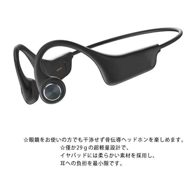 | 【おすすめ理由】 ・操作簡単できる、片手でも操作行います。 ・革命的な骨伝導技術搭載&快適な装着感。 ・ワイヤレス充電。 ・2020年最先端Bluetooth5.0が搭載された。 ・高性能リチウムバッテリ長持ち&残量表示。 【革命的な骨伝導技術搭載&快適な装着感】 ☆骨伝導技術により、耳をふさがず開放感たっぷりに音楽を楽しめる。 ☆音楽を聴きながら、周囲の環境音(車の音、信号の音など)をしっかり聞き取れます。 ☆ランニングやジョギングなどスポーツの際に周りの状況がいつでも注意できます。 ☆僅か29gの超軽量設計で、イヤパッドには柔らかい素材を採用し、耳への負担を最小限です。 ☆眼鏡をお使いの方でも干渉せず骨伝導ヘッドホンを楽しめます。 【操作簡単&IPX7防水】 ・多機能の操作は片手でも操作行います。 ・再生/一時停止、音量の調節、前/次の曲、着信コールの応答/拒否/終了、簡単に制御できます。 ・通話と音楽の切り替えが容易で、音楽中でも着信を見逃すことはありません。 ・IPX7級防水設計により水の侵入を防ぐ、水洗い、汗や水しぶき、急な雨などからイヤホンを守る防水仕様で、スポーツやエクササイズなどのアクティブシーンに最適スポーツイヤホンです。 | |