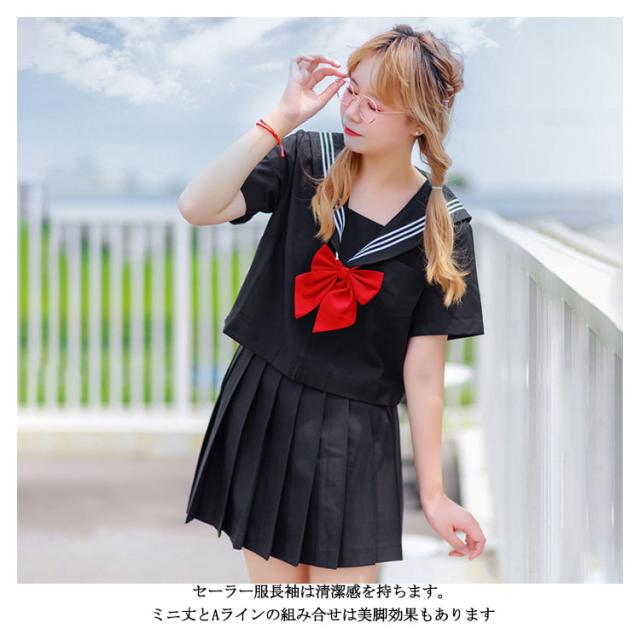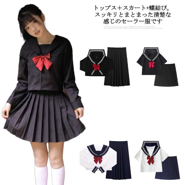 レディース 制服 セーラー服 リボン 長袖 仮装 プリーツスカート 3点セット トップス スカート セーラー 衣装 半袖 制服 セーラー服 JK制服 コスチューム コスプレ 学園祭 文化祭 歓送迎会 二次会 学生服
