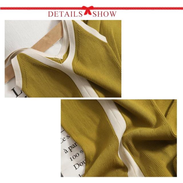 リブニットワンピース リブニット ミモレ ワンピース Vネック リボン スリット入り ノースリーブ キャミワンピース ニット ワンピ キャミソール ロング丈 無地 リブ編み ロングワンピース ニットワンピ 春 夏 秋 冬 シンプル 無地