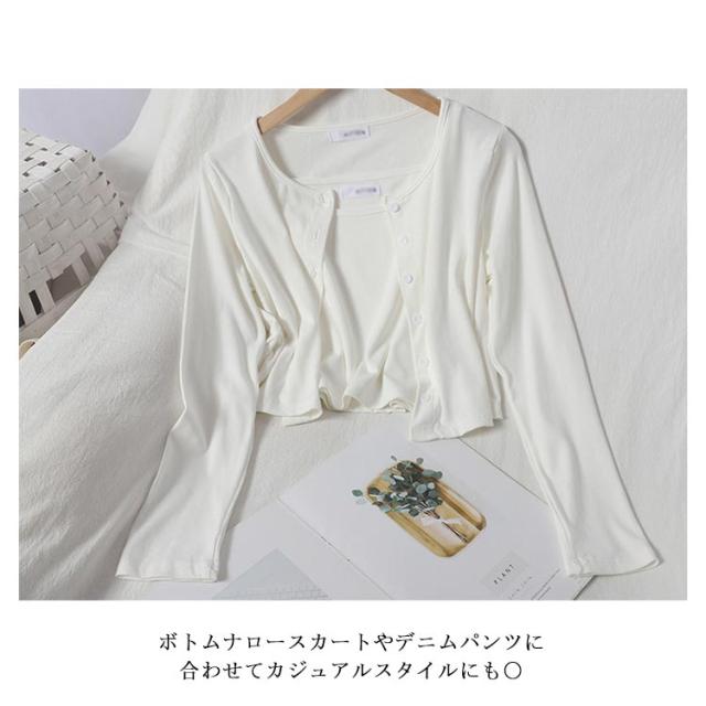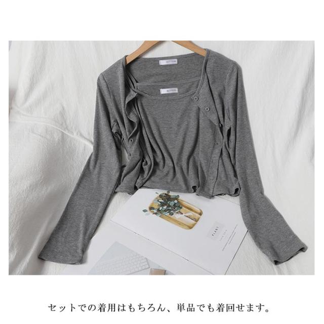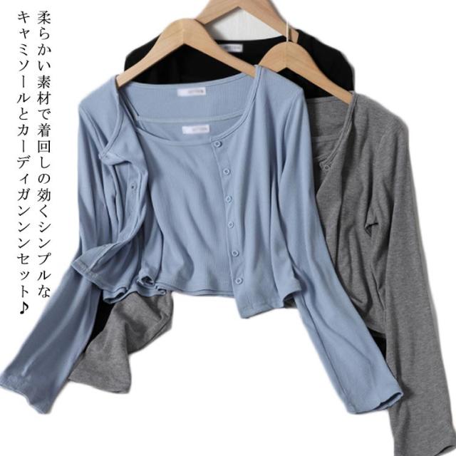 | 柔らかい素材で着回しの効くシンプルなキャミソールとカーディガンンンセット 伸縮性が良くて着心地がとても良い綿混素材。 セットでの着用はもちろん、単品でも着回せます。 ボトムナロースカートやデニムパンツに合わせてカジュアルスタイルにも〇 | |