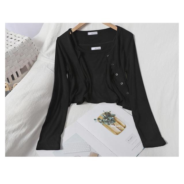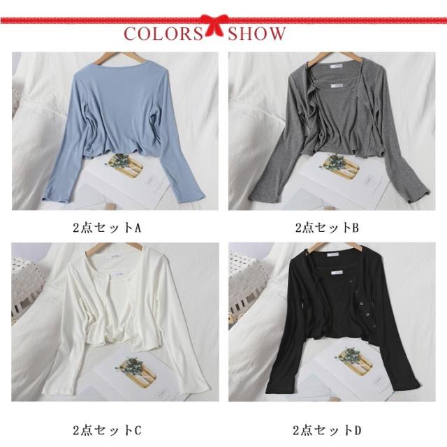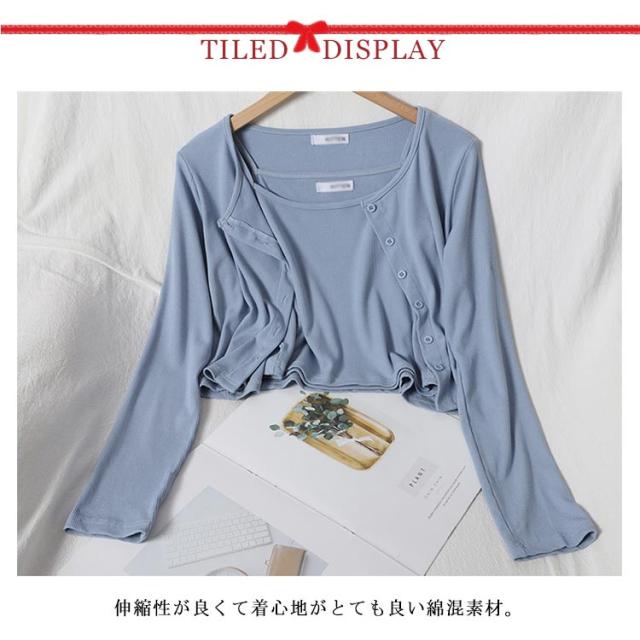 羽織 インナー セットアップ レディース キャミソール ノースリーブ 綿 春夏 長袖 2点セット Uネック トップス キャミソール 送料無料 無地 体型カバー 着痩せ シンプル カジュアル ゆったり カーディガンンン