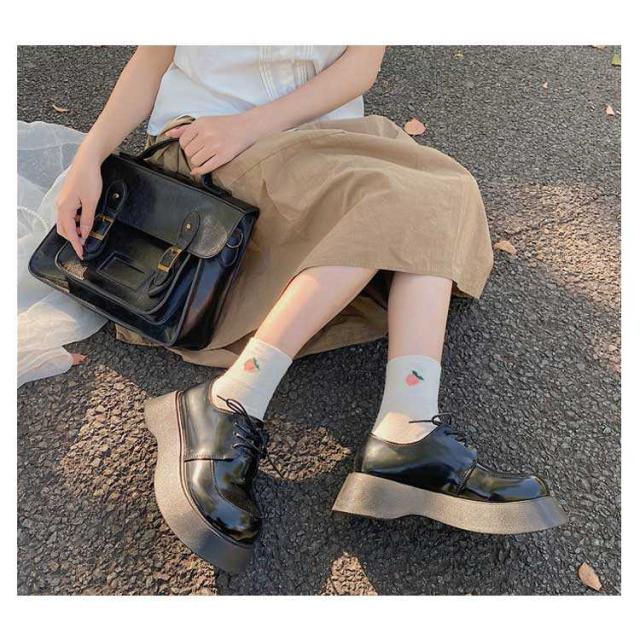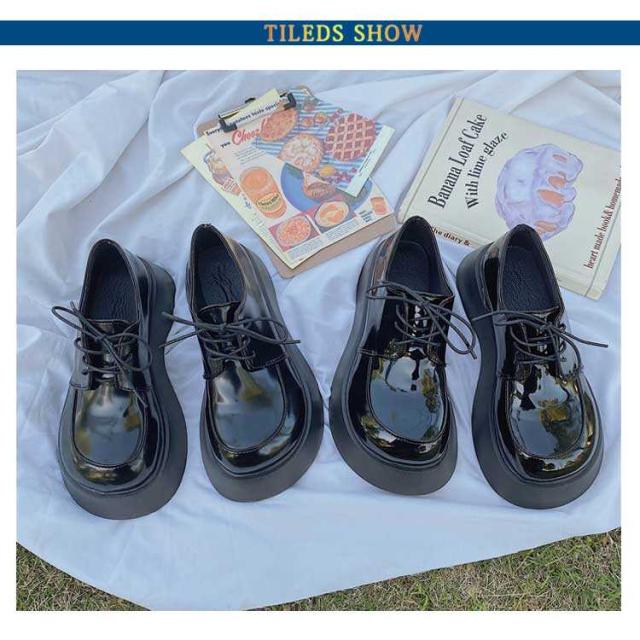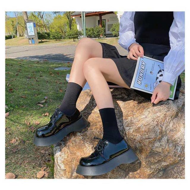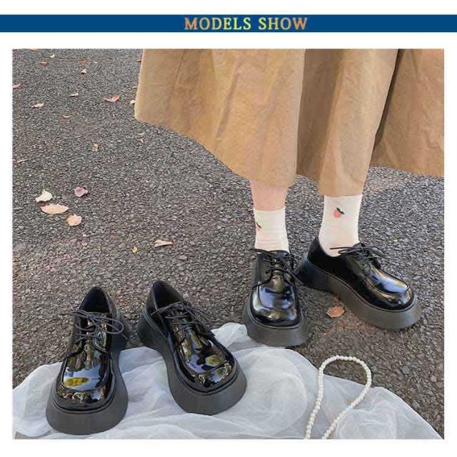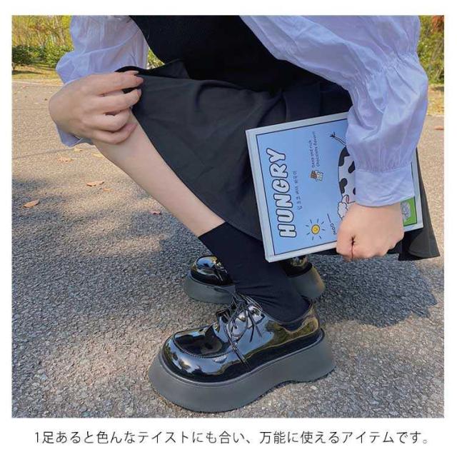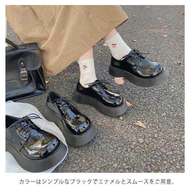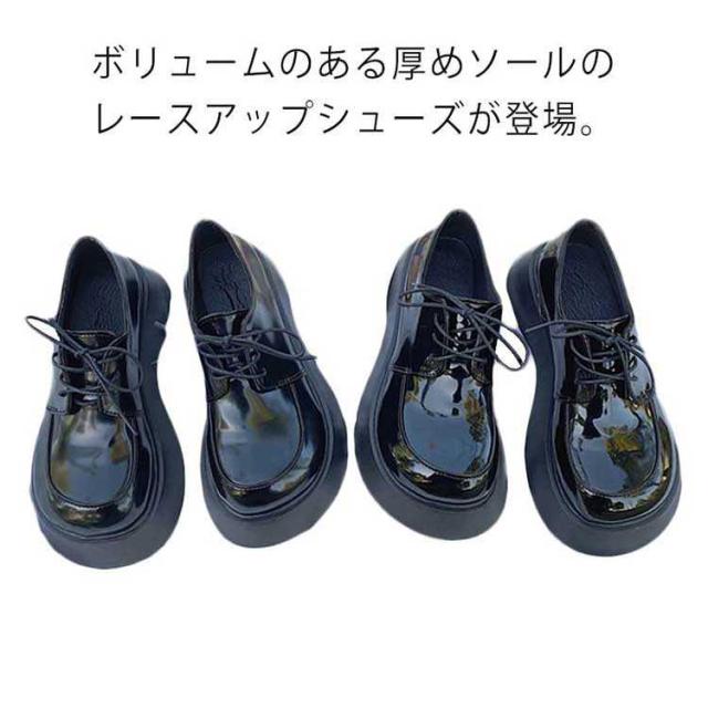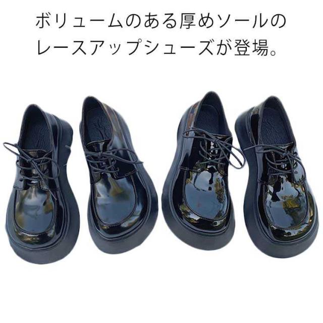 厚底レースアップシューズ チャンキーヒール 厚底パンプス 太ヒール ブラック 紐靴 靴 安定感 歩きやすい 疲れにくい デート チャンキー 低身長コーデ 通学 通勤 学生 大人 女子 シンプル