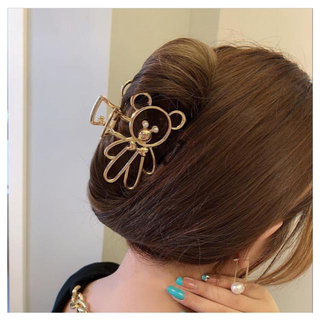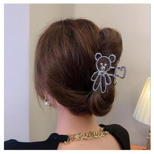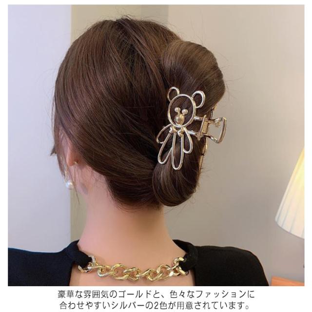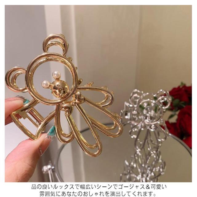 ヘアクリップ ヘアアクセサリー しっかり挟める くま 動物柄 誕生日 まとめ髪 熊 クリップ ヘアアレンジ 【送料無料】バンスクリップ 金属 バンス ねじねじ ロープ 結婚式 ギフト ゴールド シルバー 韓国 トレンド シンプル 髪留め