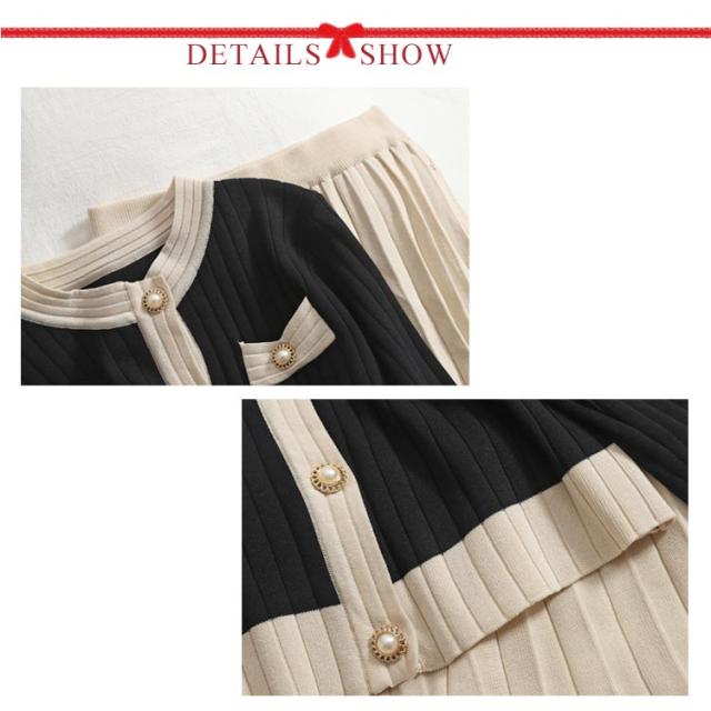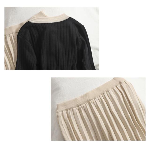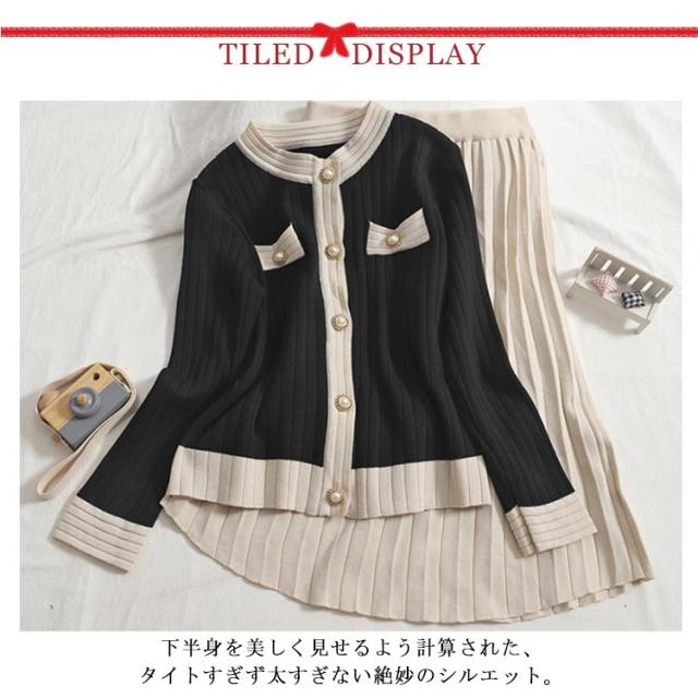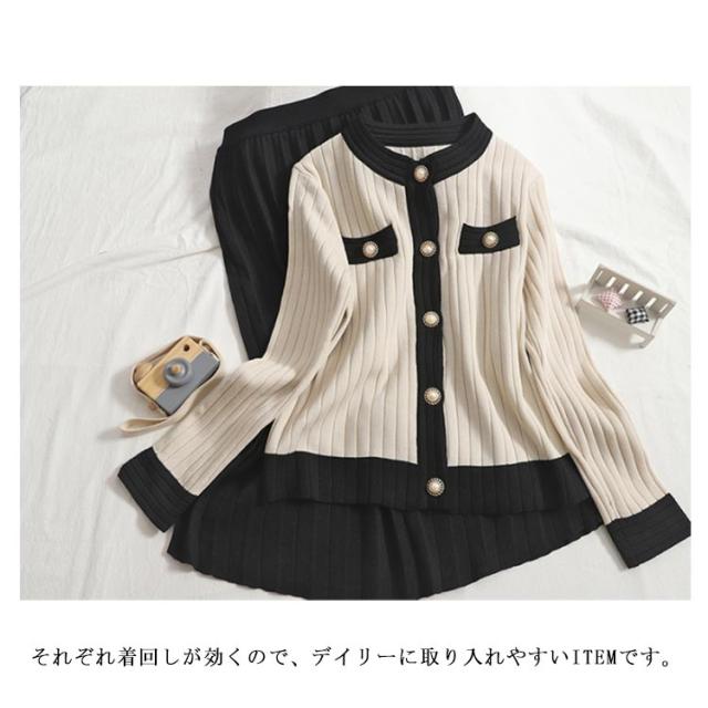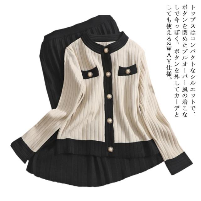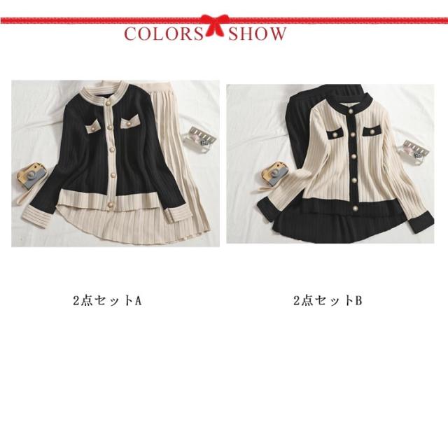 【2点セット】【トップス+スカート】ニットアップ レディース プリーツスカート 長袖 ニットセットアップ 着痩せ かわいい セーター ロングスカートニット セットアップ 無地 着回し 大人可愛い 可愛い カーディガンン お洒落 おしゃれ ニット