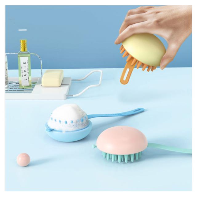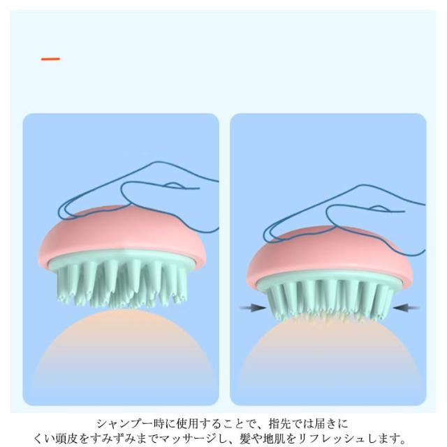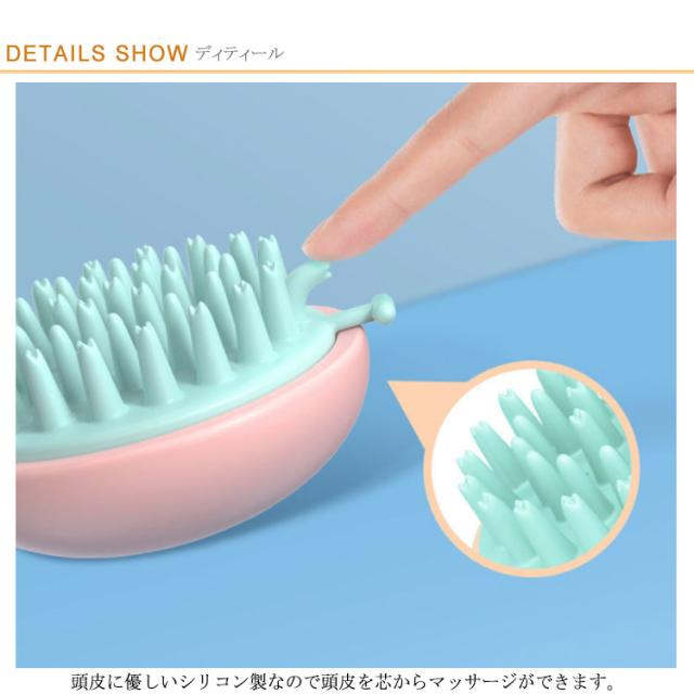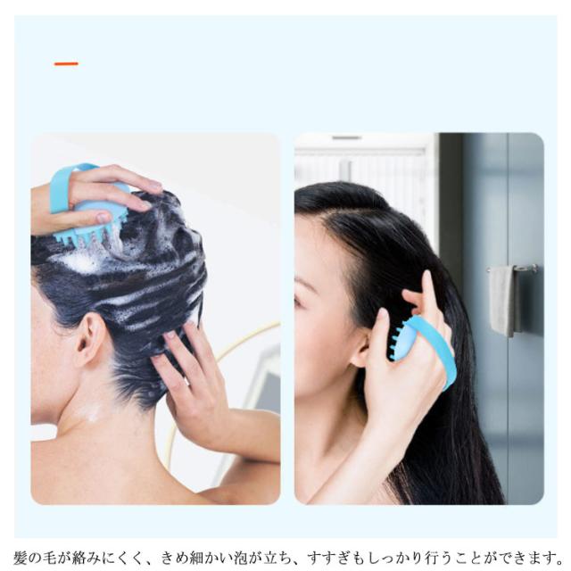 | シャンプーしながら頭皮をスッキリ清潔に! 頭皮に優しいシリコン製なので頭皮を芯からマッサージができます。 シャンプー時に使用することで、指先では届きにくい頭皮をすみずみまでマッサージし、髪や地肌をリフレッシュします。 髪の毛が絡みにくく、きめ細かい泡が立ち、すすぎもしっかり行うことができます。 持ち手の形状が手にフィットするので、しっかりと洗うことができます。 ご使用後はお風呂場のフックにかけるだけで衛生面も安心! | |